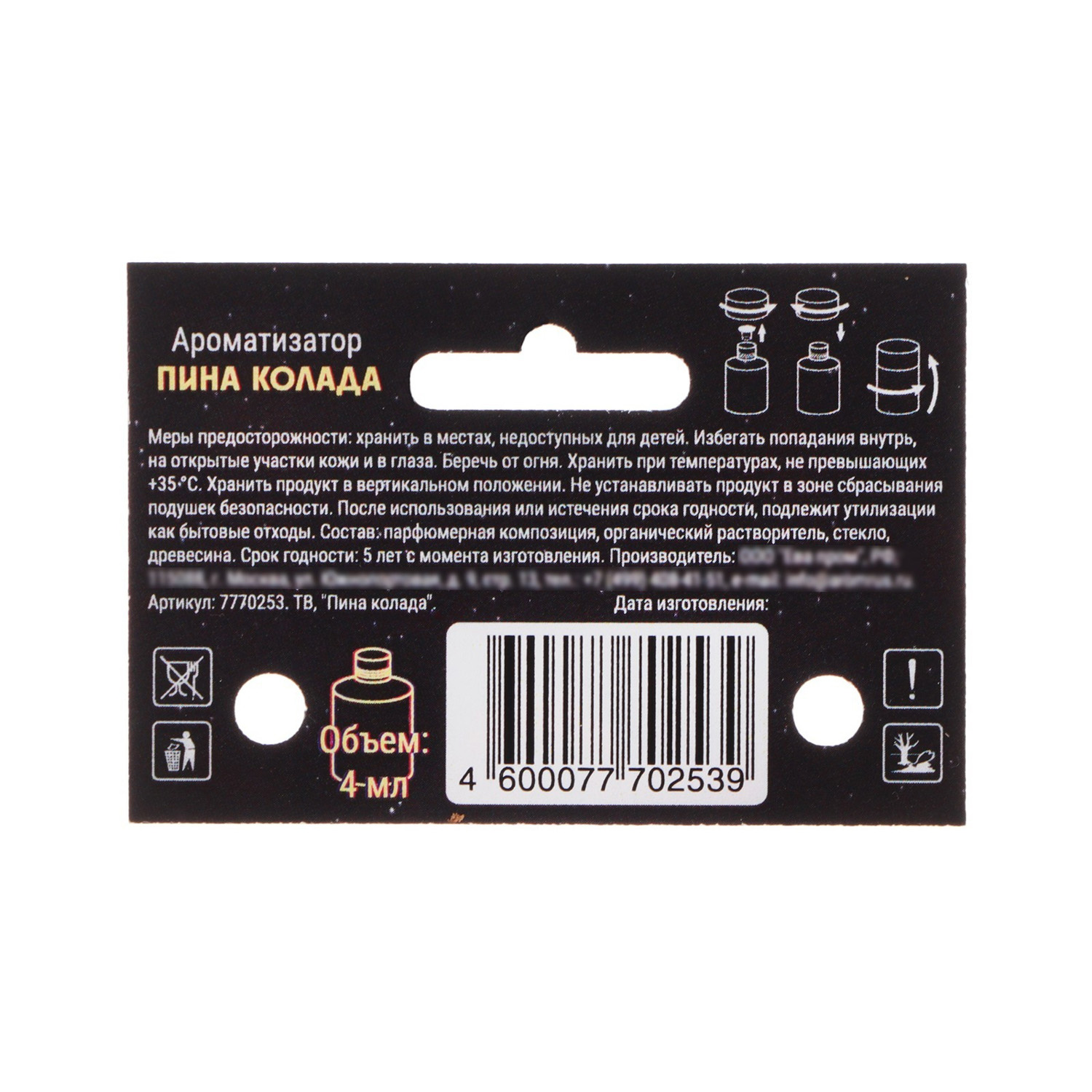 Ароматизатор подвесной Grand Caratt Тути-фрутти, 4 мл 7770253