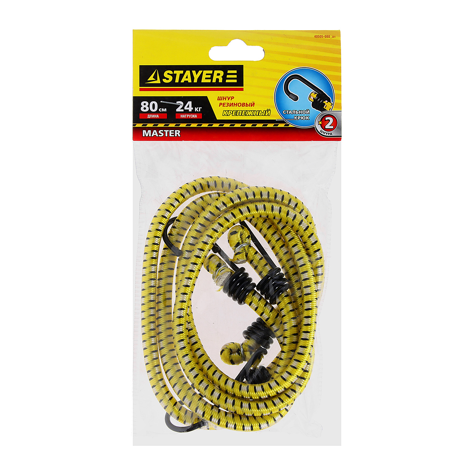 Шнур крепежный резиновый 80 см,d7мм, 2 шт, крюки стальные Мастер (арт.40505-080_z01) Stayer *1/6/48