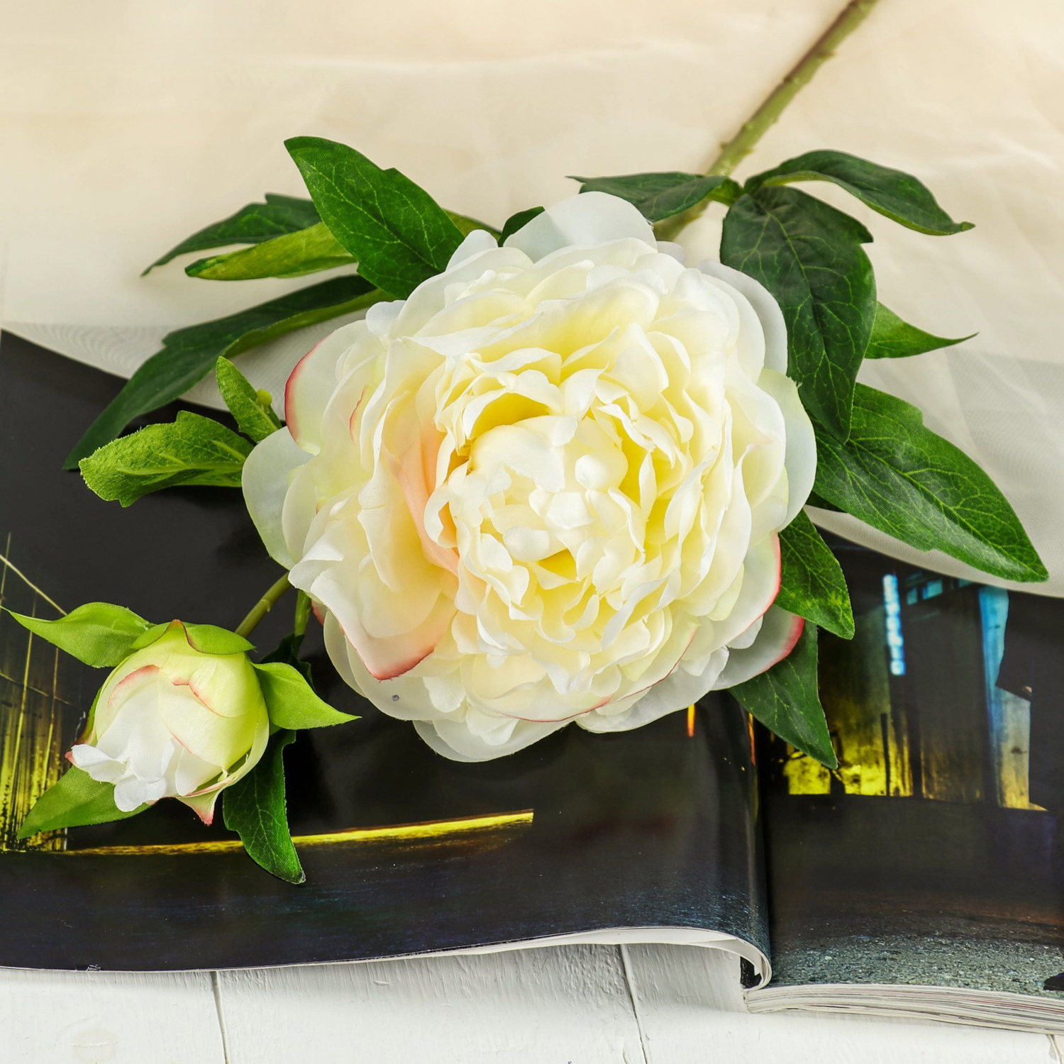 Цветы искусственные "Пион дуо" 12х60 см, белый 4142875