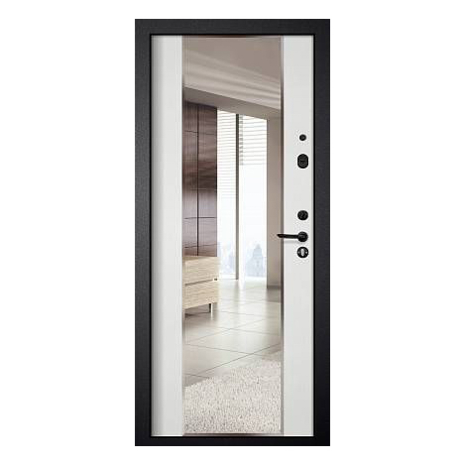 Дверь входная Двери Гуд М-4 GOODMAN, 860х2050х80 мм, с зеркалом, левая, черный шелк/белый ясень
