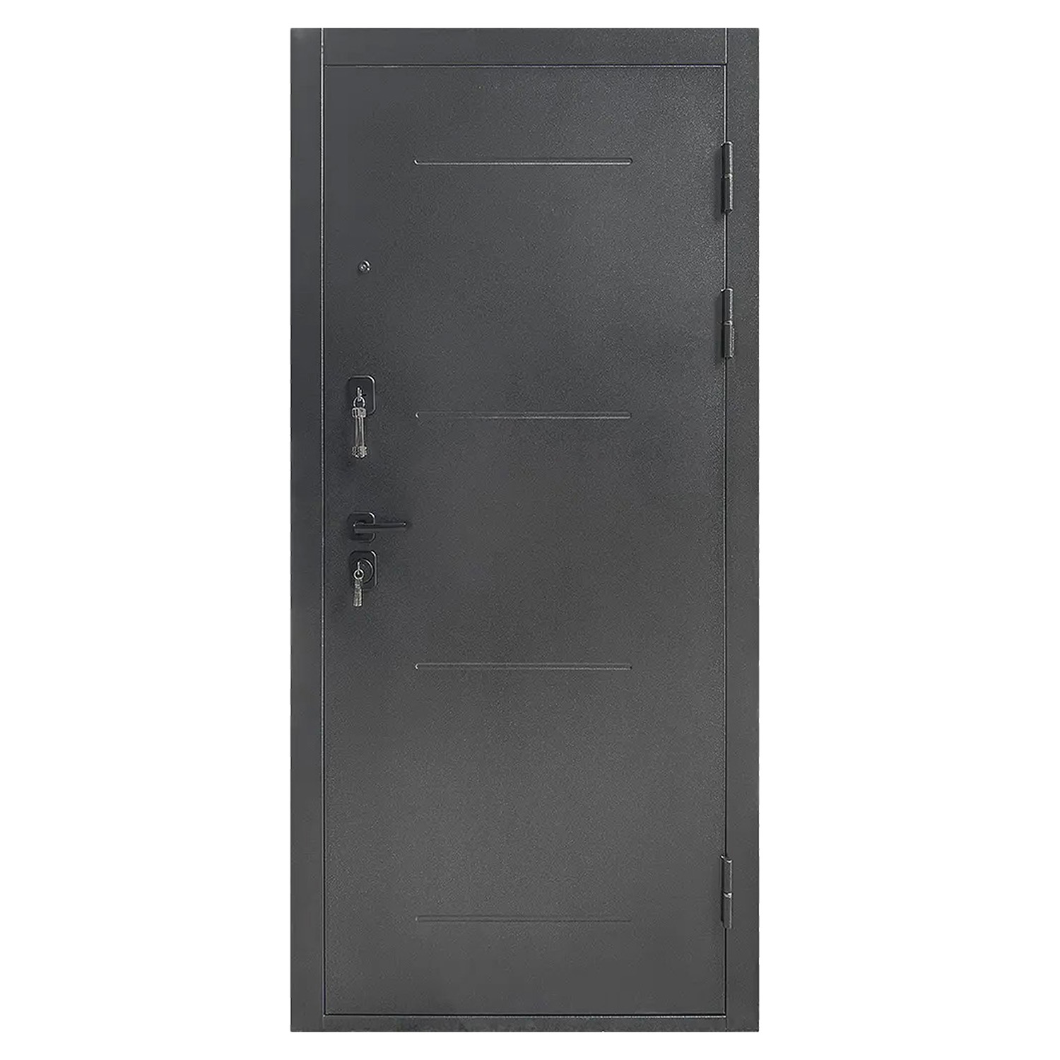 Дверное полотно, дверная коробка, замок основной, замок дополнительный, петли - 3 шт., ручки, наклад