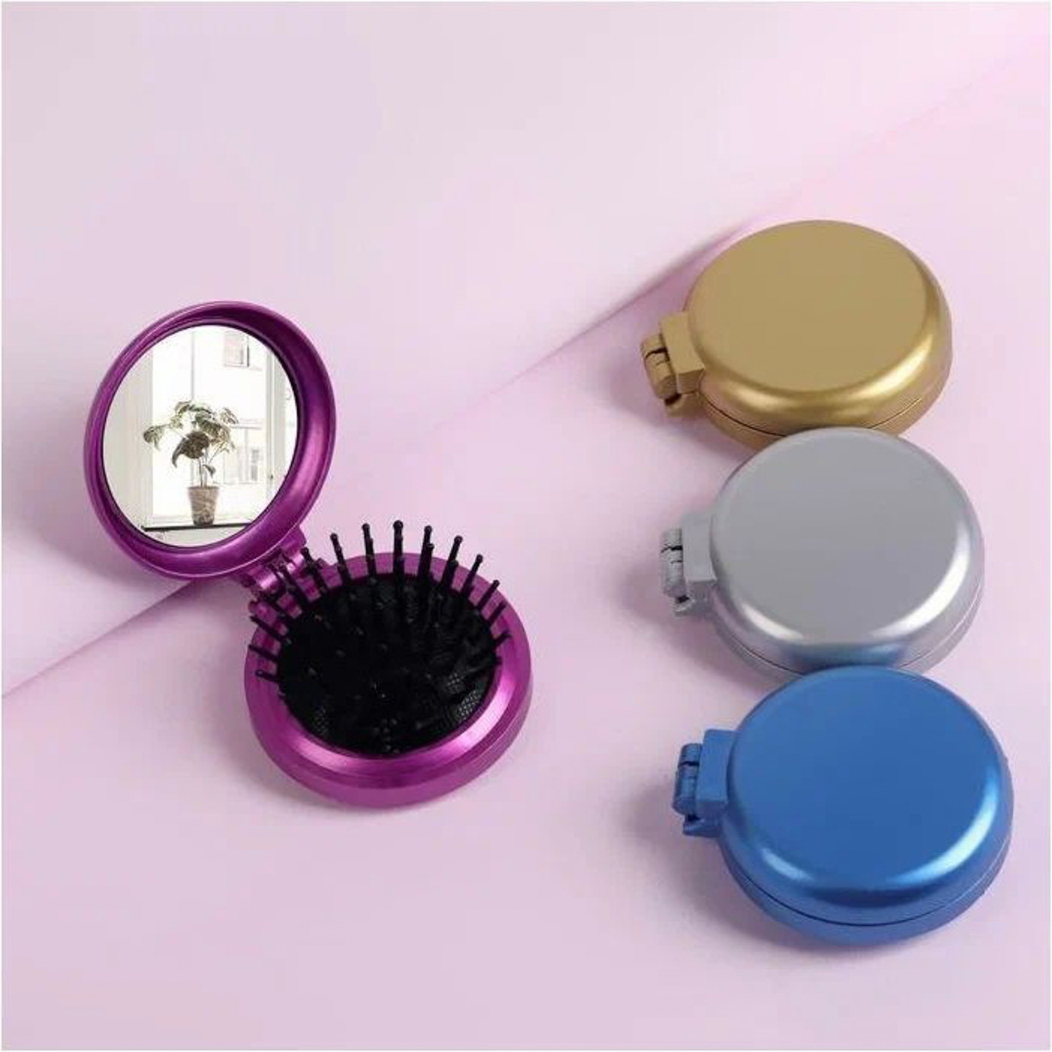 яяяРасчёска массажная складная круг с зеркалом d6*3см зубчики разноцв микс пакет QF 1271210
