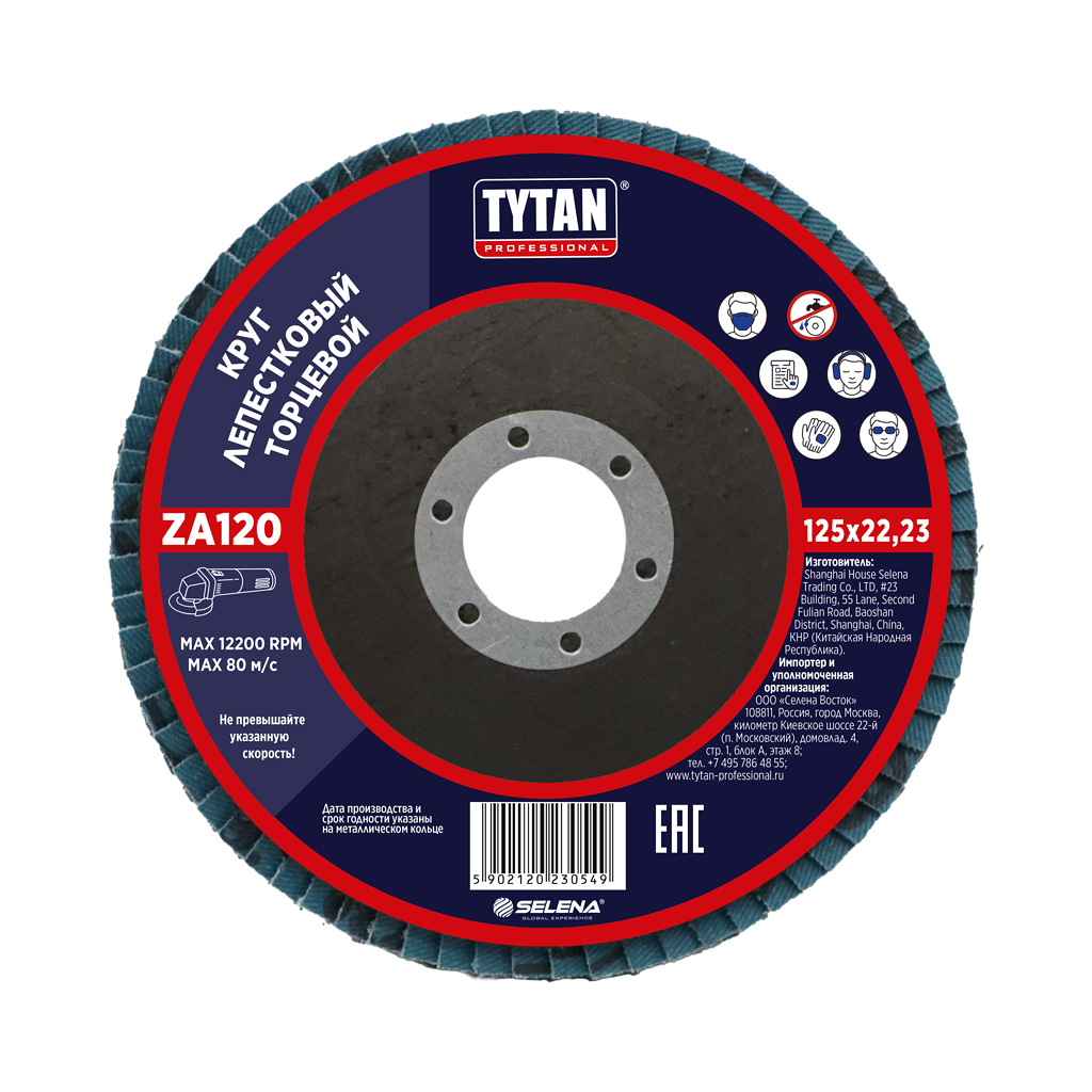 Круг шлифовальный лепестковый торцевой 125*22,23мм ZA120 оксид циркония TYTAN *10/200