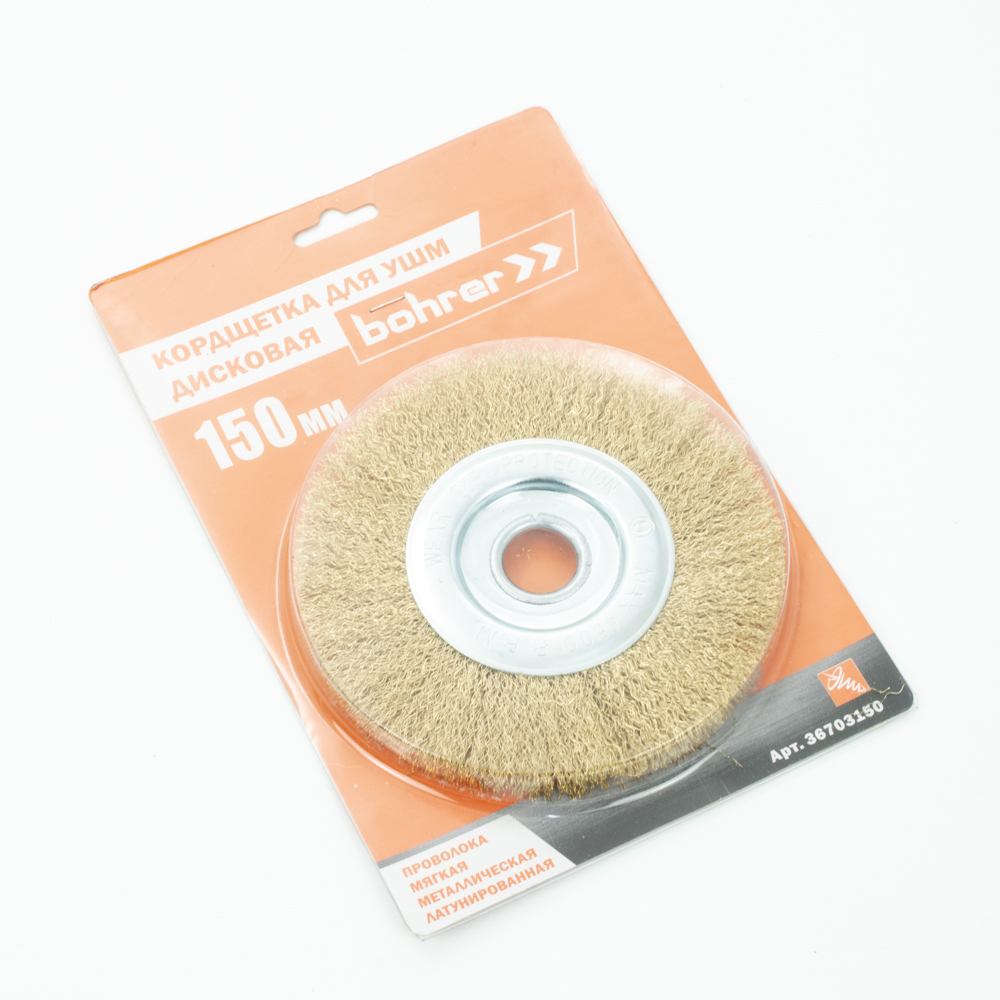 Щетка-крацовка "плоская" латунирован.круч.провол.0,3мм150мм 22,2мм для УШМ арт.36703150 Bohrer *1/40