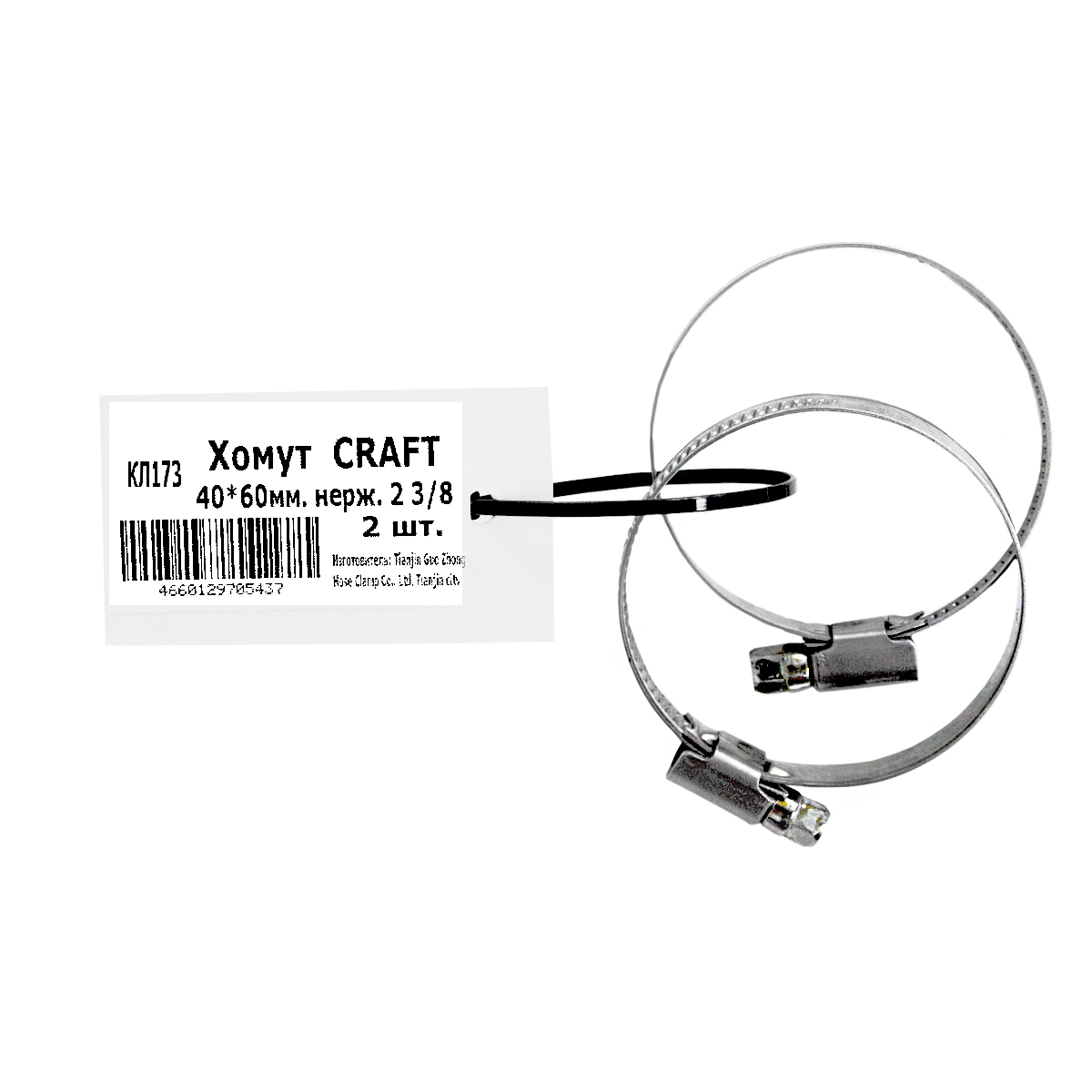 Хомут червячный 40-60мм (2,3/8") нерж. (2шт) пакет BROZEX *10