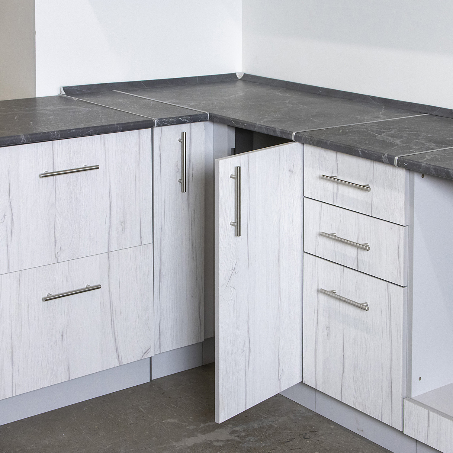 Шкаф напольный угловой 1000х850х600 мм BROZEX-WOOD Camellia, левый, с дверцей, серый / юта