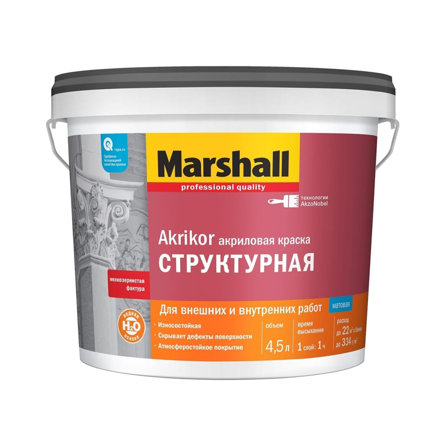 Краска акриловая фасадная 4,5 л Marshall AKRIKOR структурная База ВW *1
