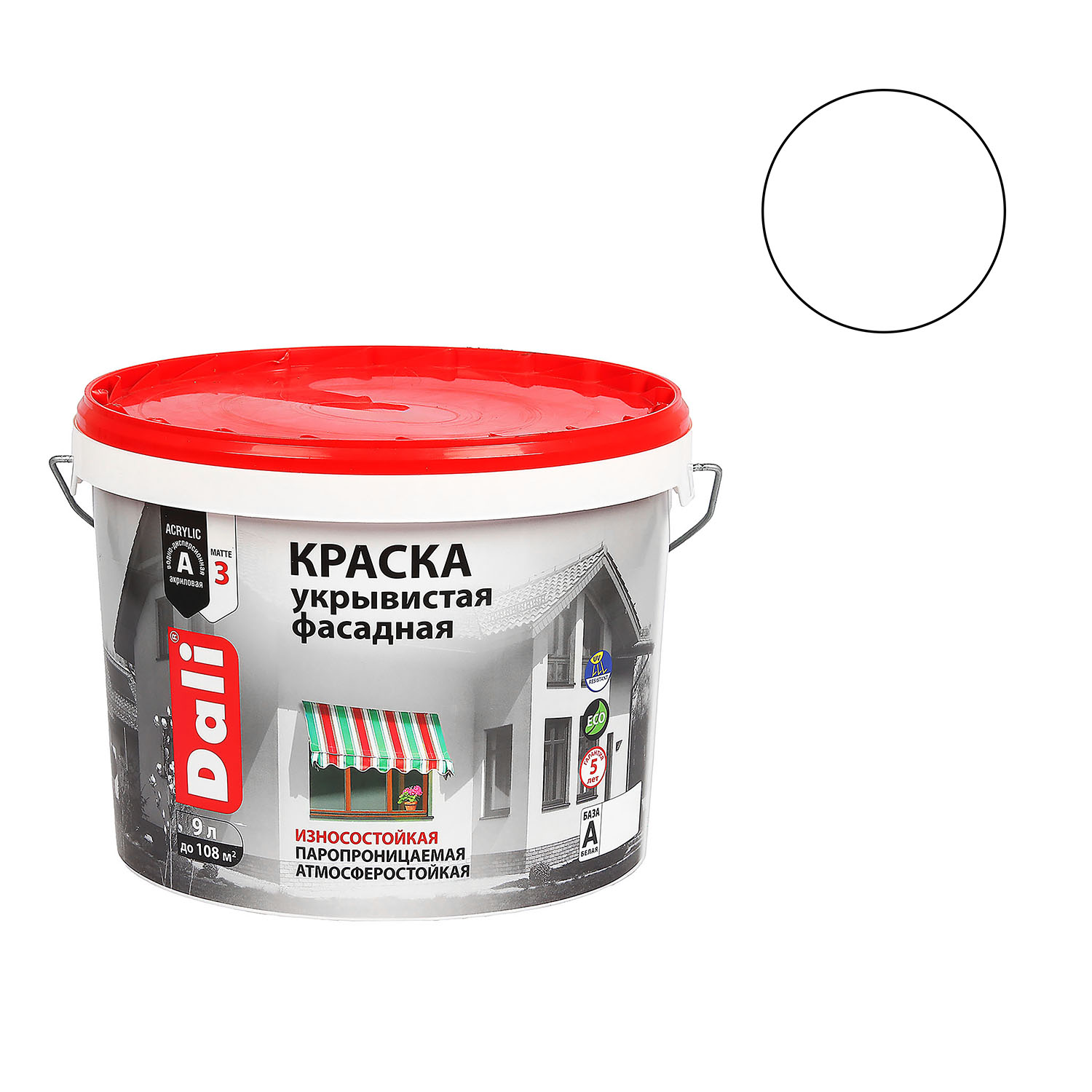 Краска акриловая 9 л фасадная DALI, укрывистая