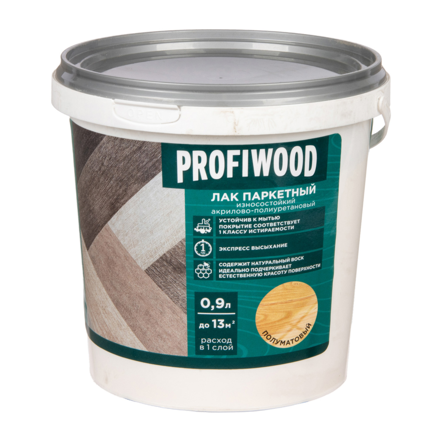 Лак акрилово-полиуретановый паркетный полуматовый 0,9 кг PROFIWOOD *1/6/336