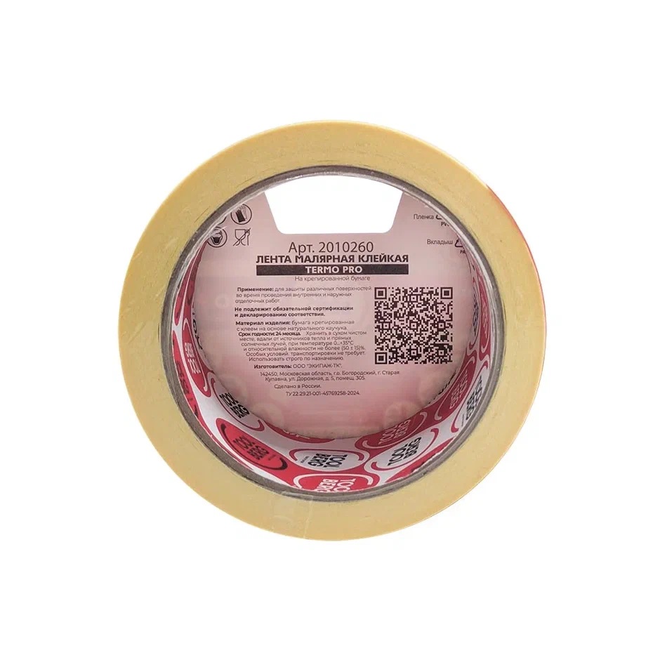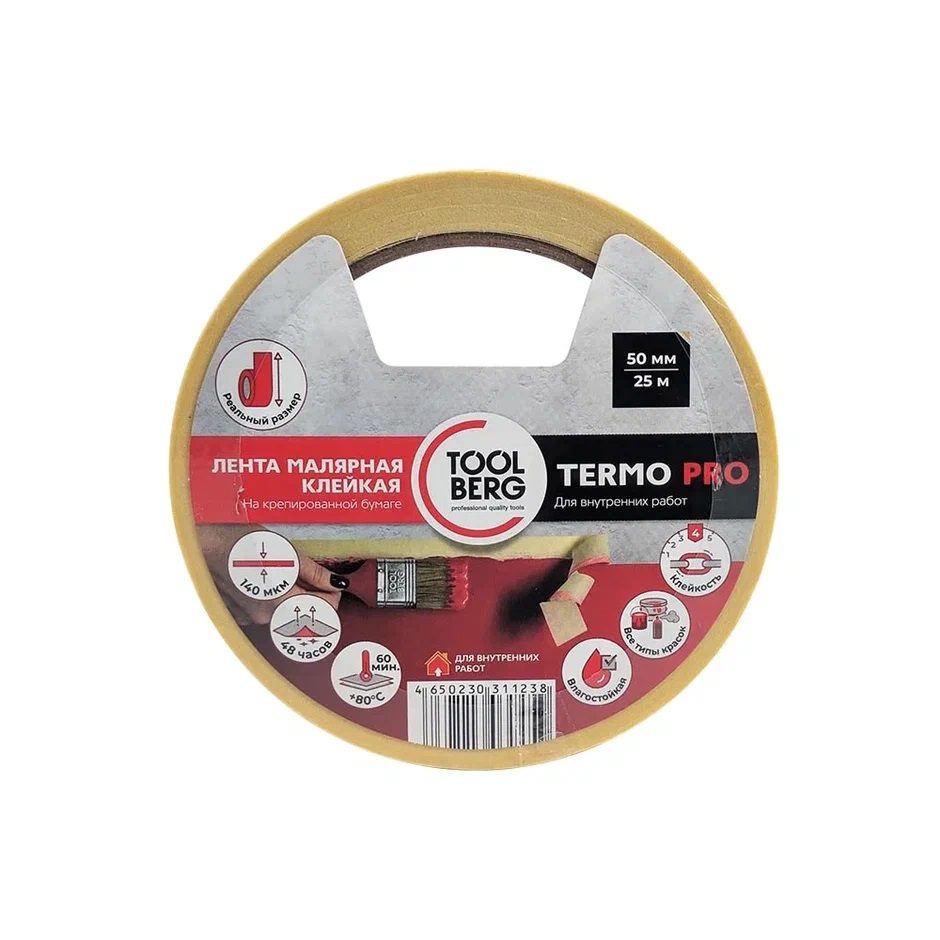 Лента клейкая малярная термостойкая "ТЕРМО PRO" 50мм х 25м арт.2010260 "TOOLBERG" *1/36