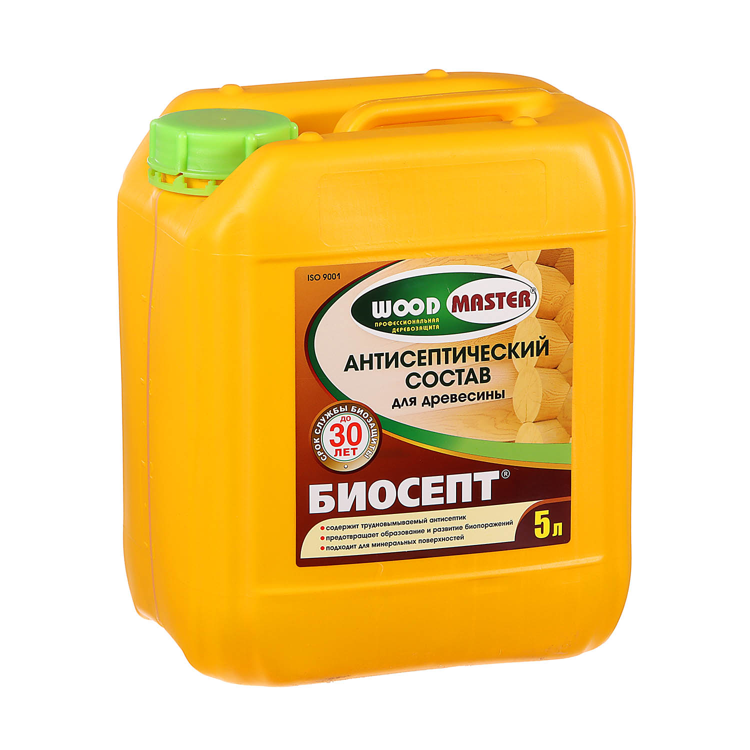 Антисептик Woodmaster Биосепт 5 л — трудновымываемый пропиточный состав для защиты древесины и минеральных основании от биопоражений.