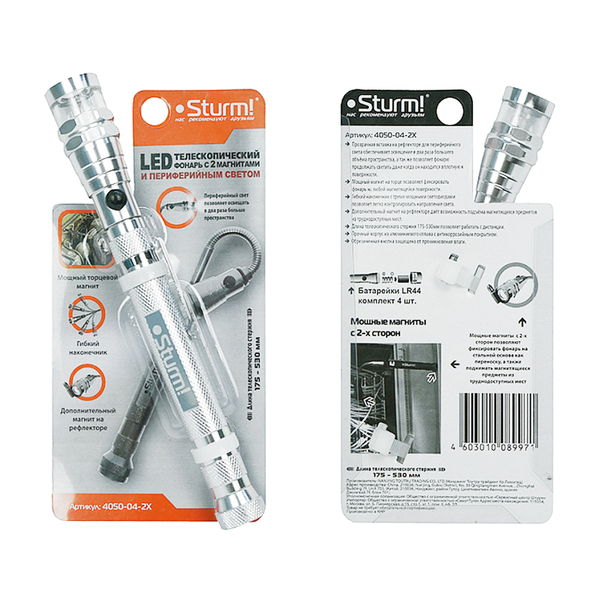 Фонарь ручной телескопический Sturm!, 3 светодиода, 2 магнита, периферийный свет