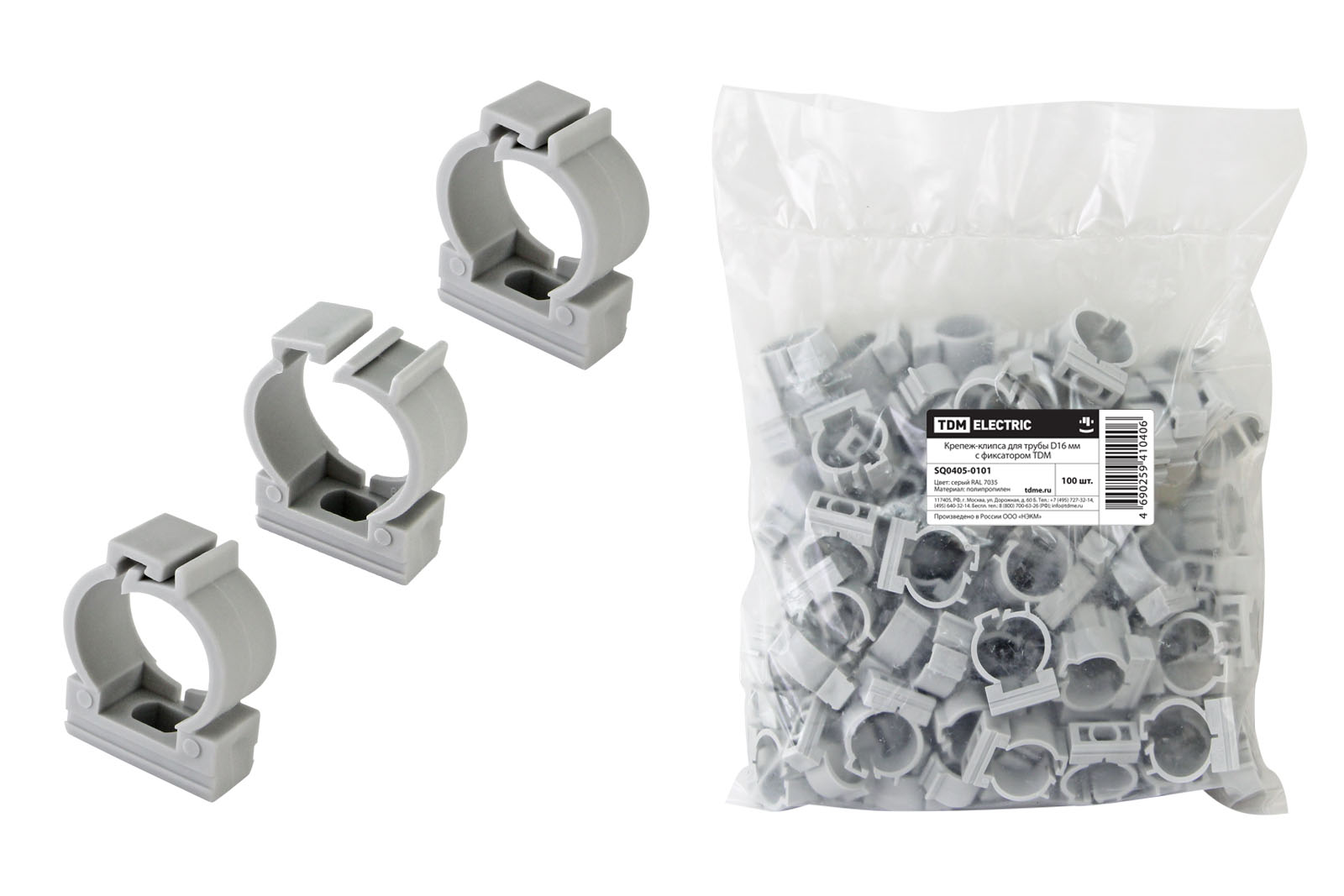 Крепеж-клипса d16мм (для трубы пвх гофро с зонд) с фиксатором упак.100шт TDM SQ0405-0101 *1/10