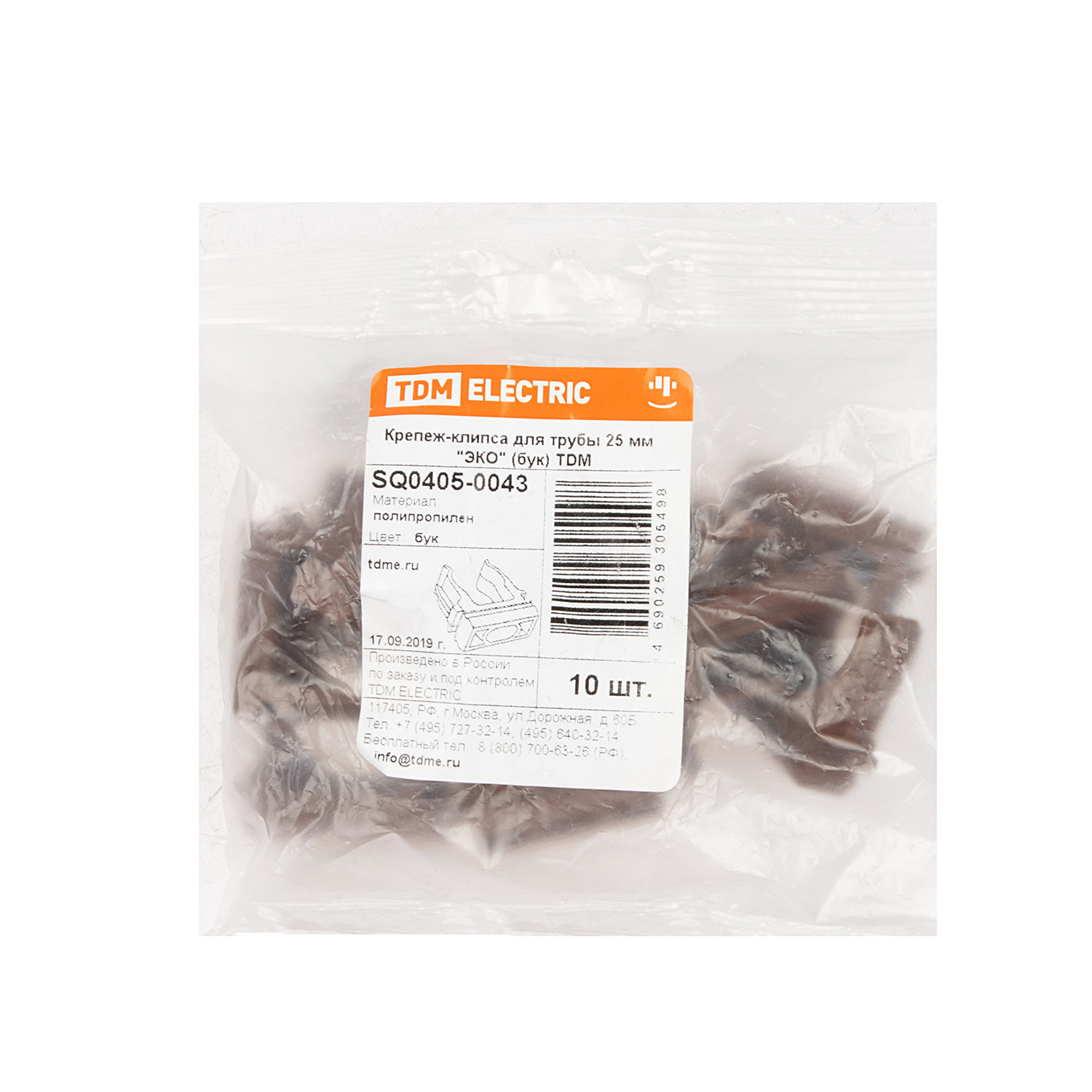 Крепеж-клипса d25мм для трубы "Эко" бук (упак.10шт) TDM SQ0405-0043 *1/90