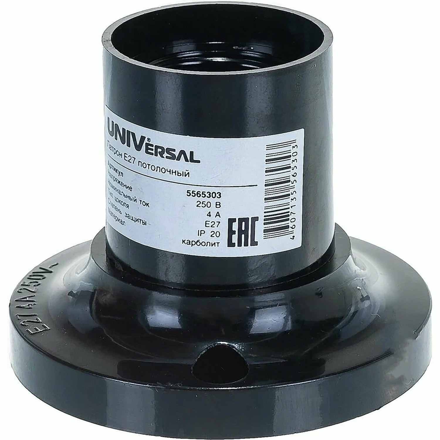 Патрон карболитовый E27 потолочный 4А 250В с этикеткой черн. UNIVersal 5565303