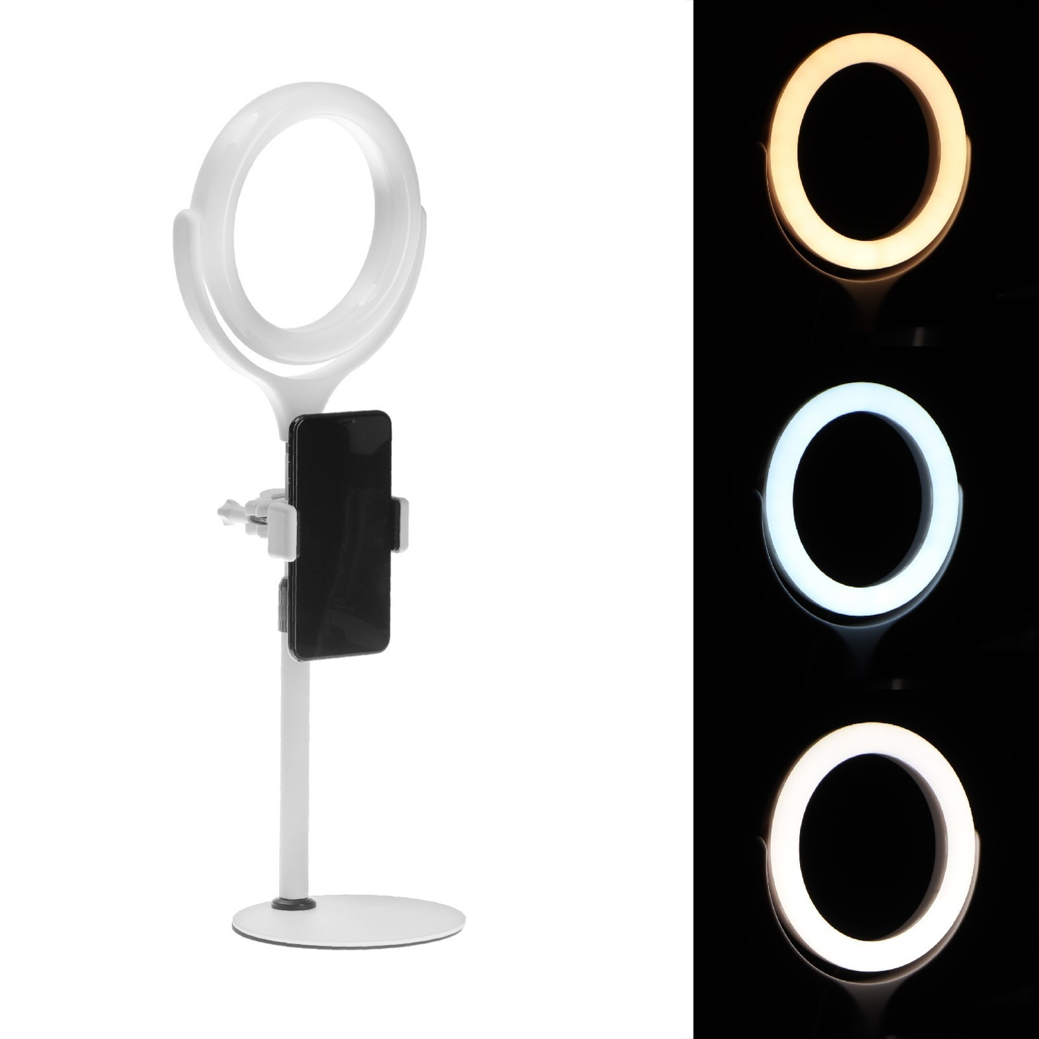 Светодиодная кольцевая лампа на штативе F537, подставка, лампа 16 см, Bluetooth-пульт, белая 7510965