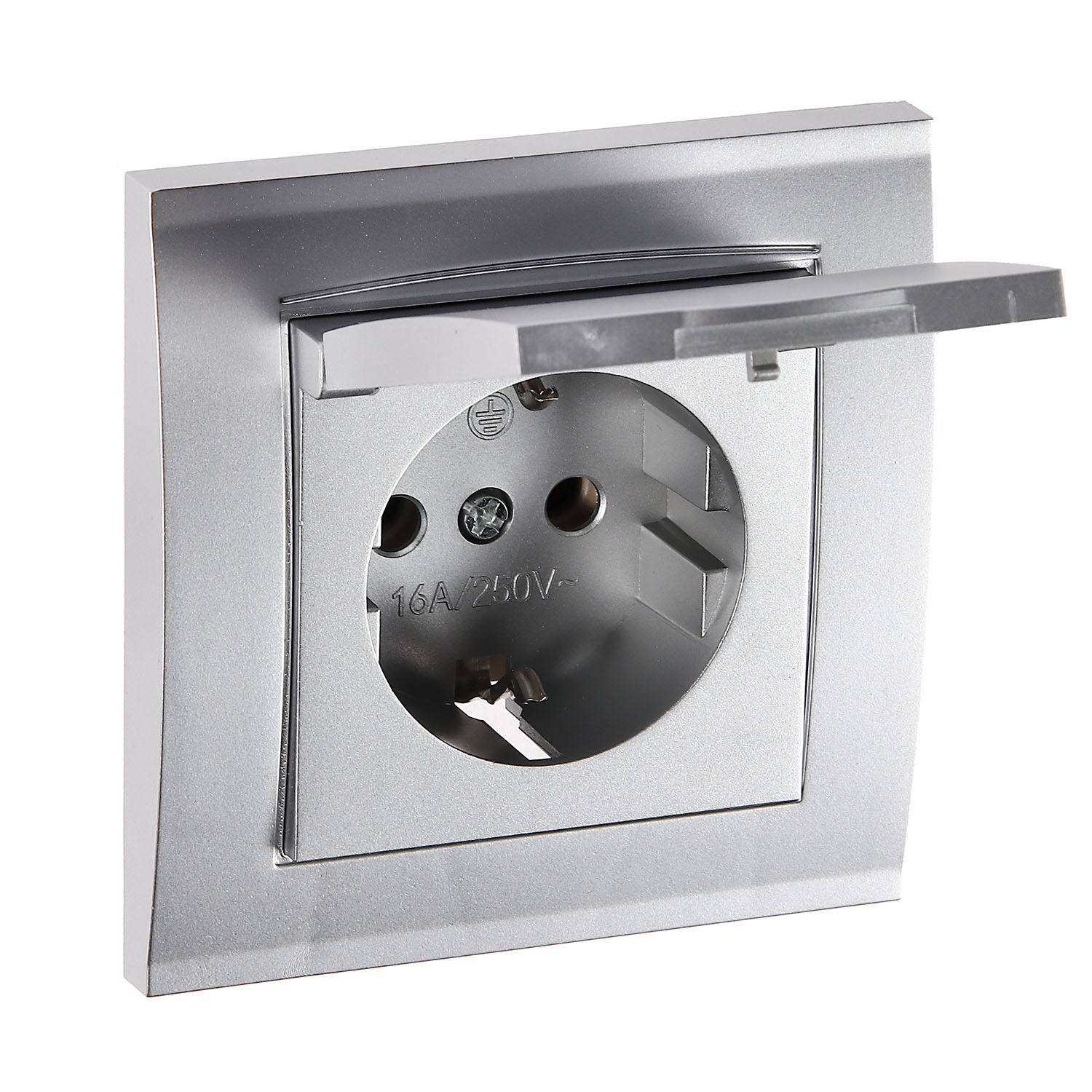 Розетка Бриллиант СП 1-мест. серебро сз с крышкой 16А IP20 UNIVersal 7949896