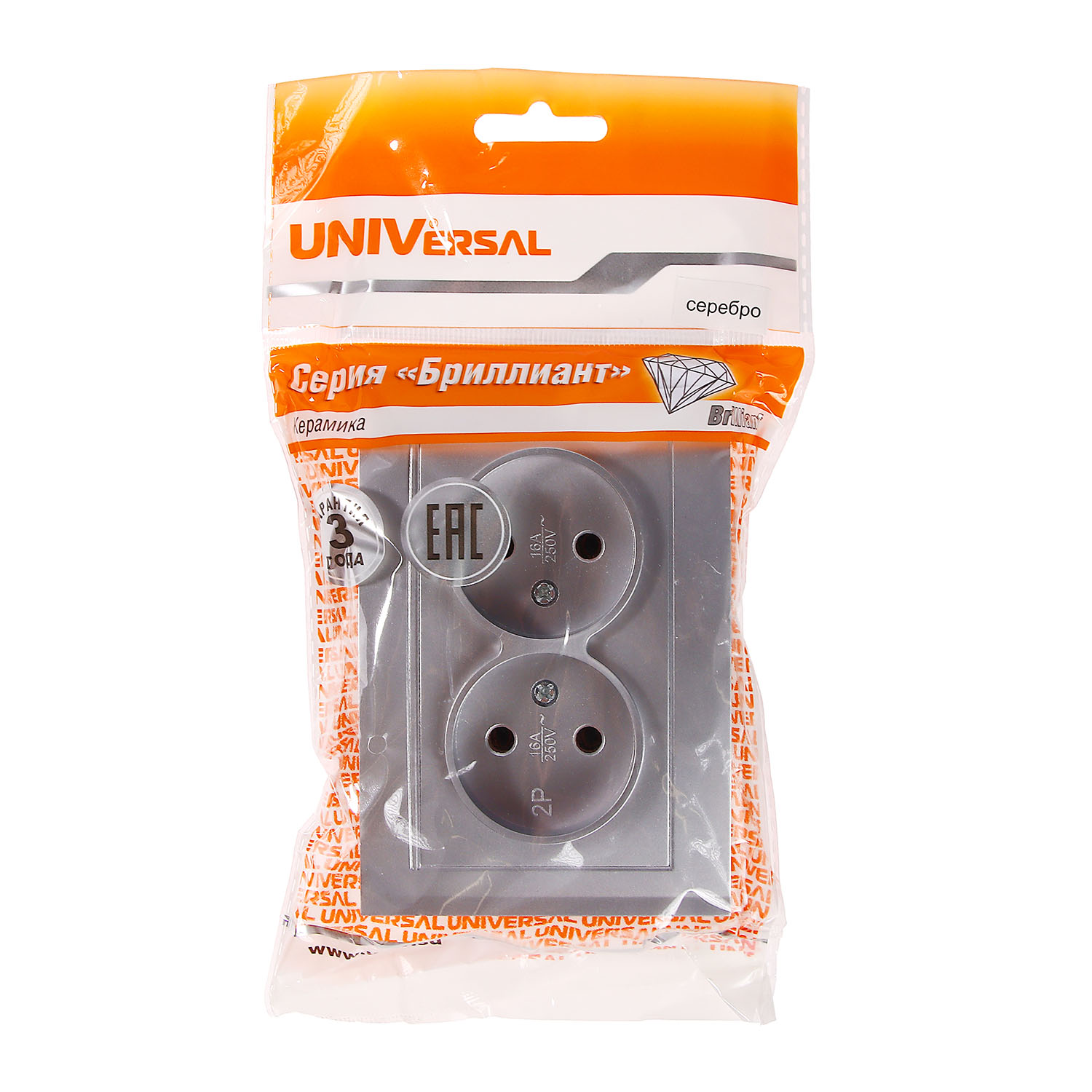 Розетка Бриллиант СП 2-мест. серебро бз 16А IP20 UNIVersal 7949766 *10100