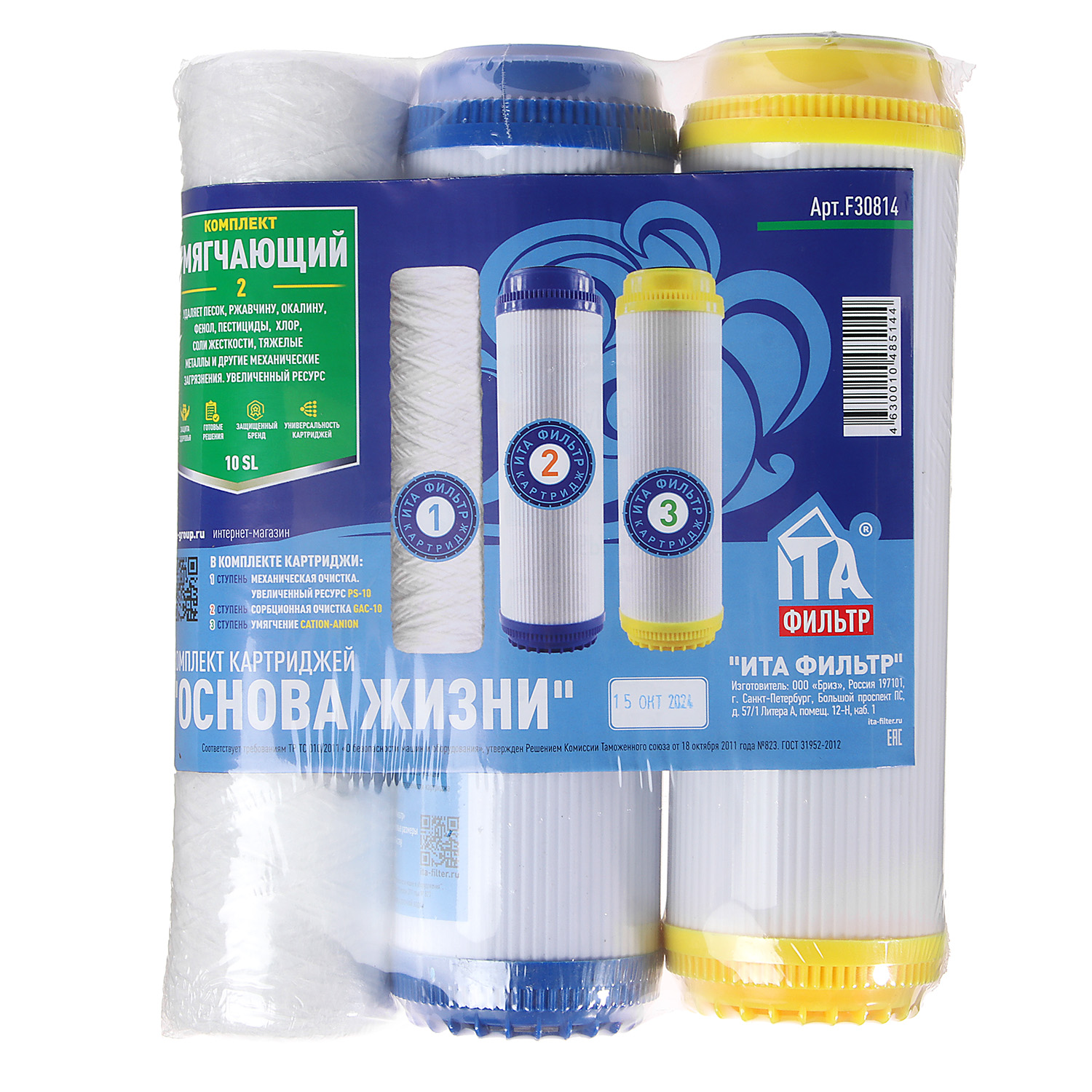Комплект картриджей для умягчения воды ИТА Фильтр Основа жизни, 3 ступени, 4000 л