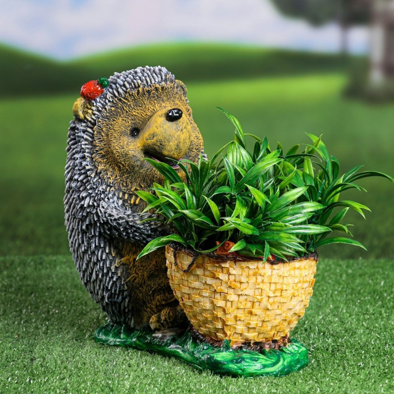 Садовая фигура "Ежик с плетеной корзинкой" 26х25х15см 9572969