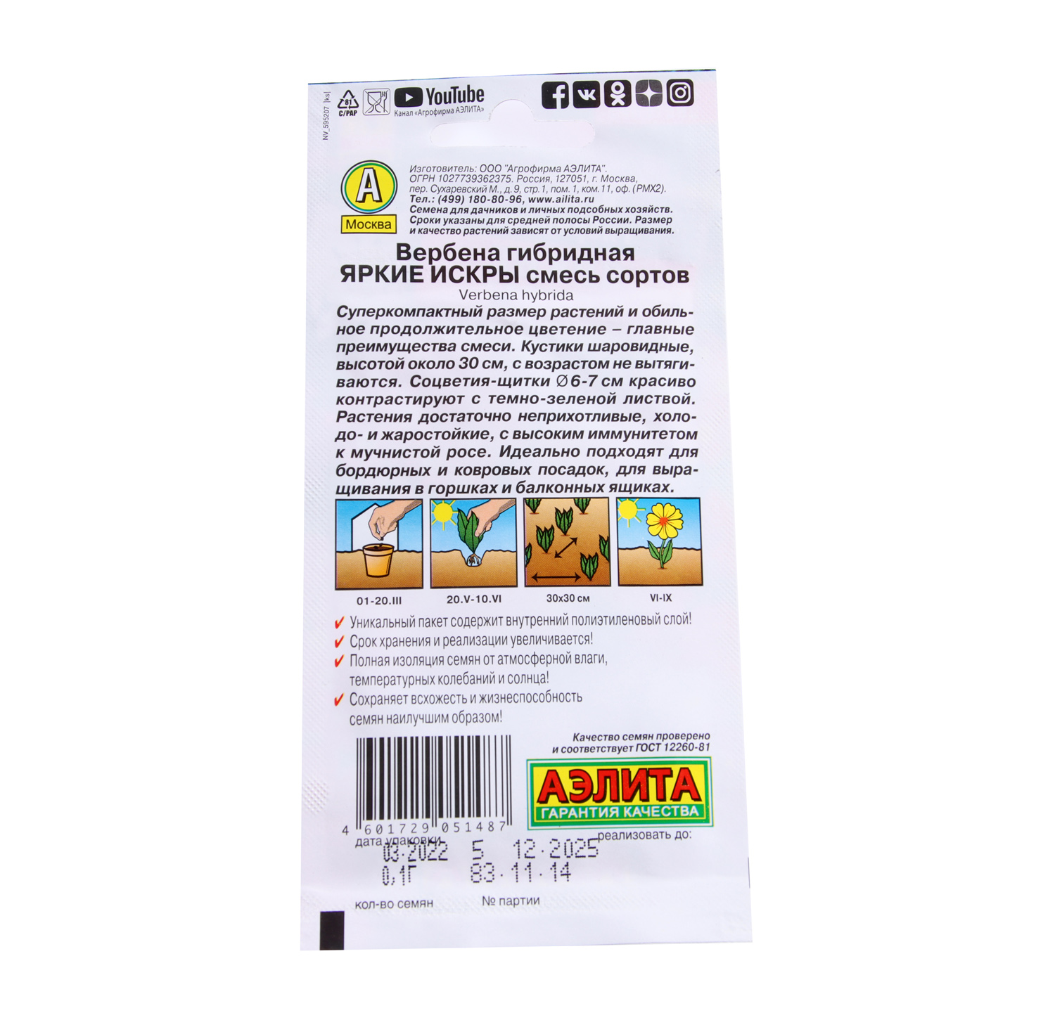 Семена Вербена Яркие искры смесь 0,1гр Аэлита цв *10/200