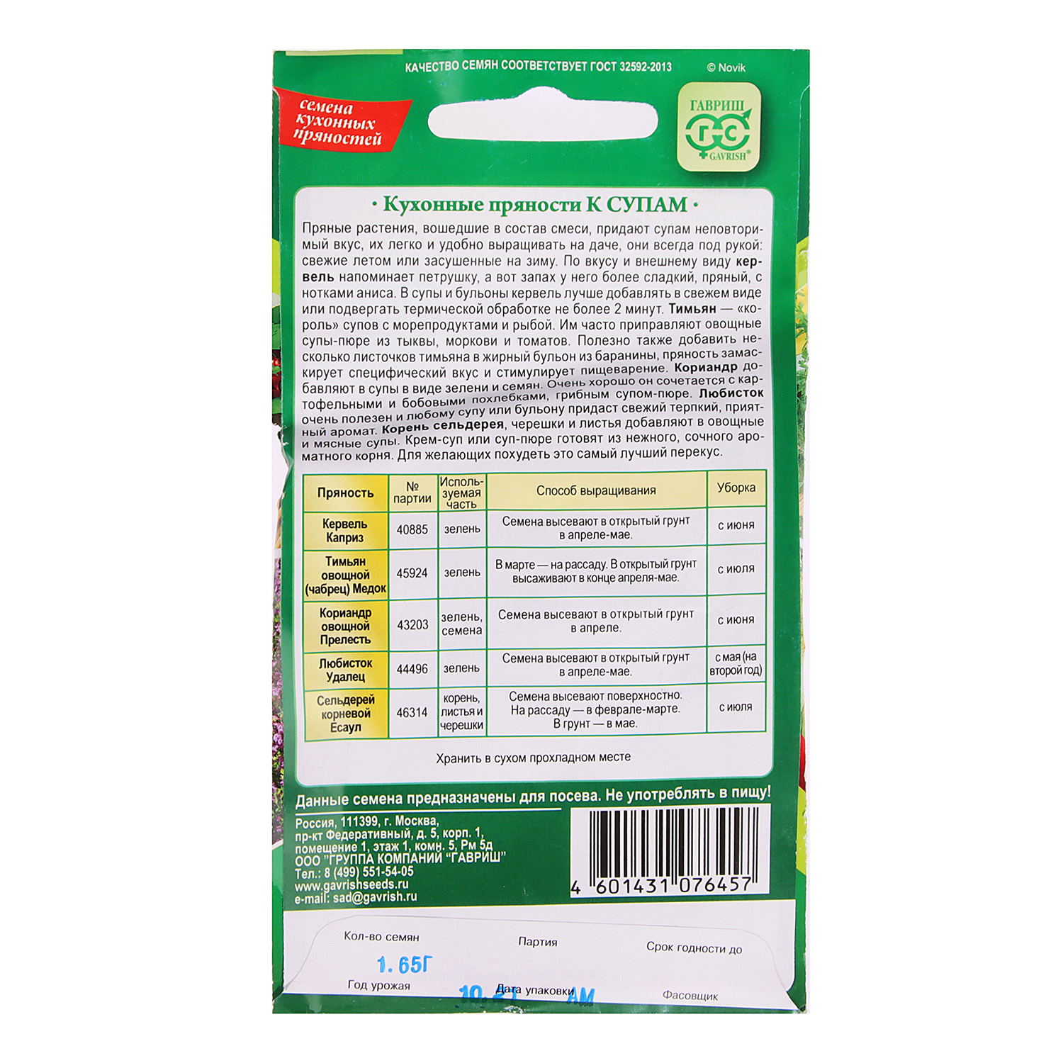 Кухонные пряности к супам 1,65г Гавриш *10