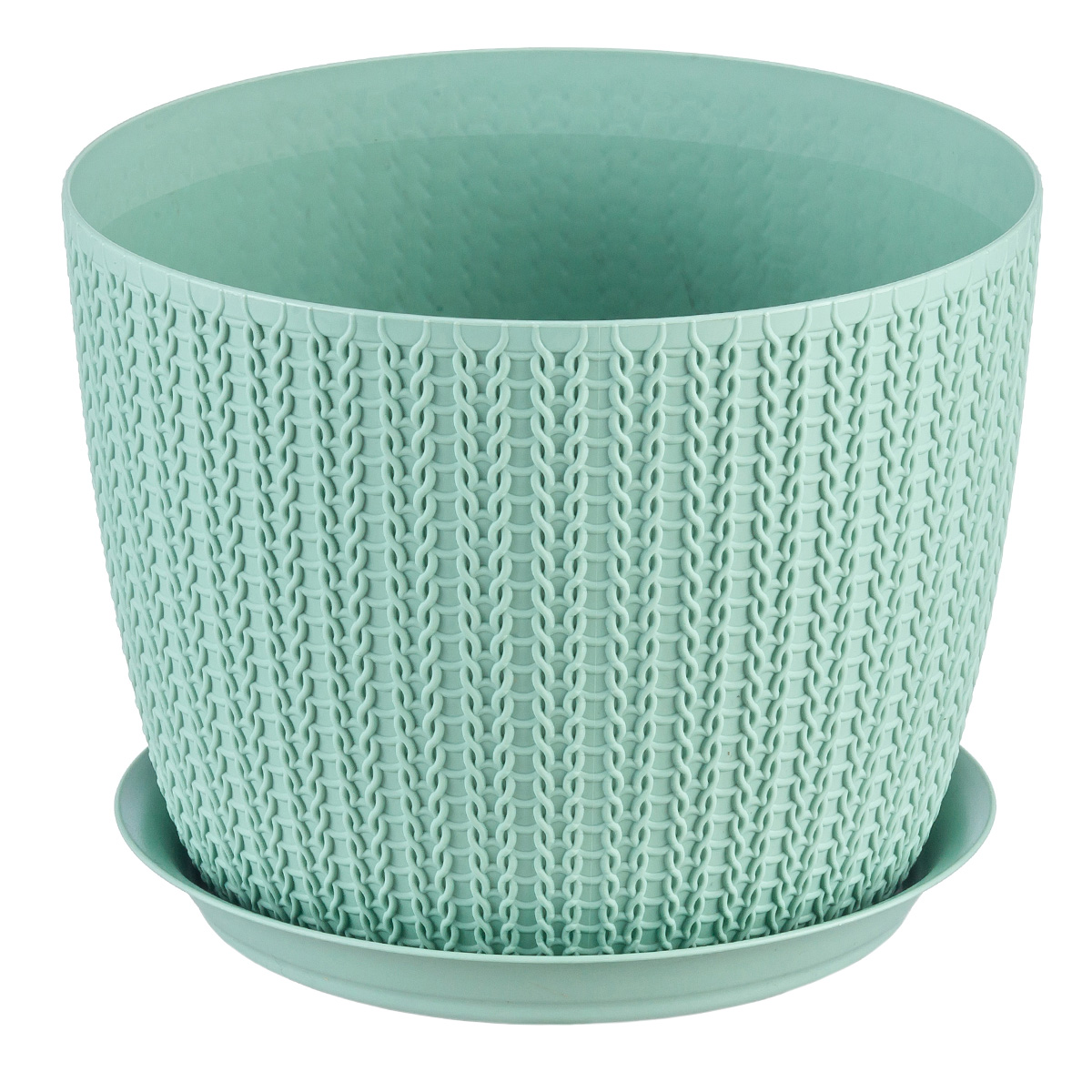 Оригинальная текстура, которая имитирует вязание спицами – изюминка этого изделия. Современное кашпо, украшенное нежной вязкой, подчеркивает красоту цветов и добавляет уюта вашему интерьеру. Кашпо из прочного пластика не боится прямых солнечных лучей и перепадов температур. Легкие и прочные, комплектуются поддонами.