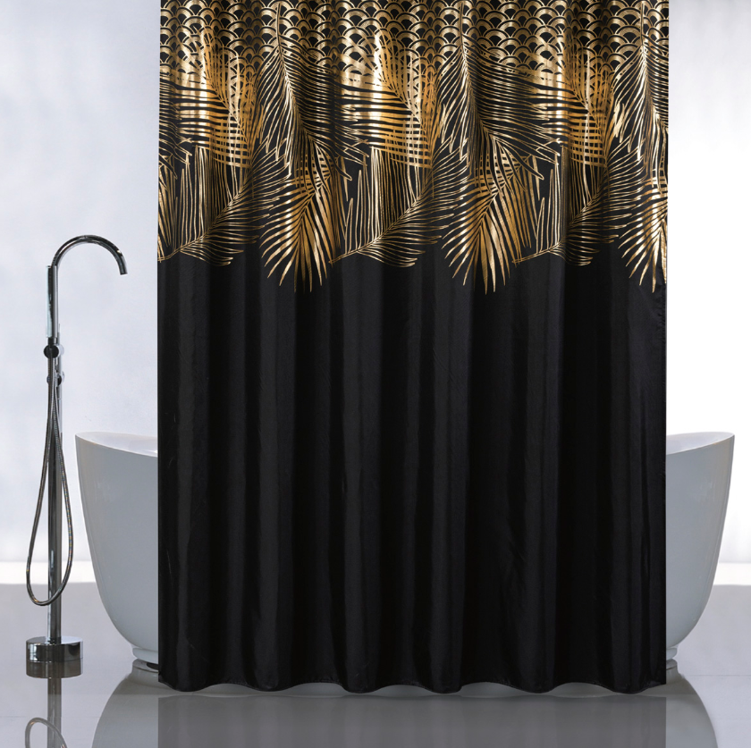 Штора  для ванной "Санакс" п/эстер 180*180см "Золотые перья на черном" без колец 01-107 *1/24
