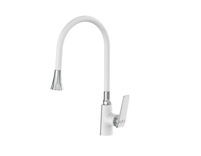 Смеситель для кухни Diadonna D137-41W гибкий излив, белый *1/10