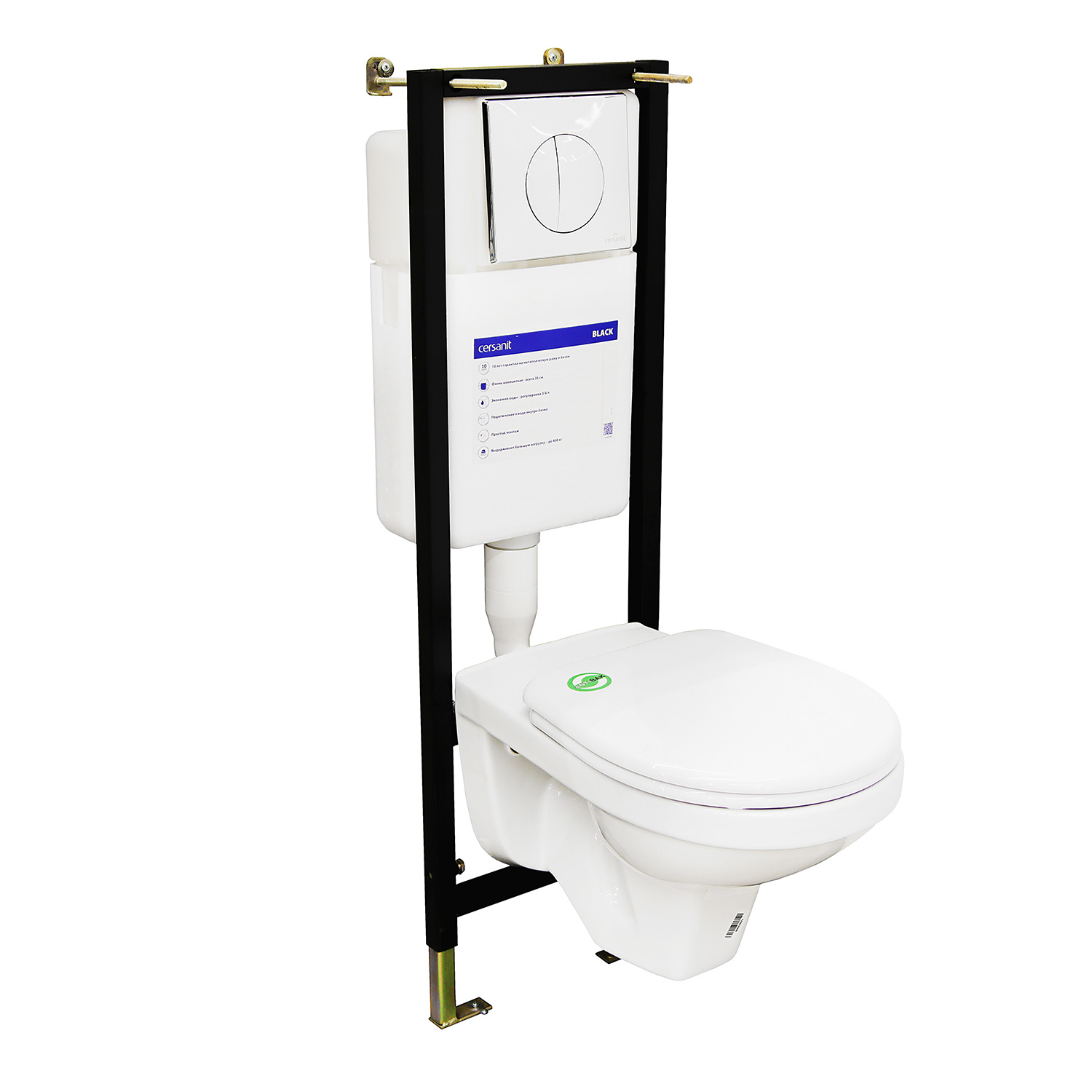Комплект инсталляции с унитазом Cersanit PARVA Clean On, сиденье с микролифтом, с кнопкой LEON