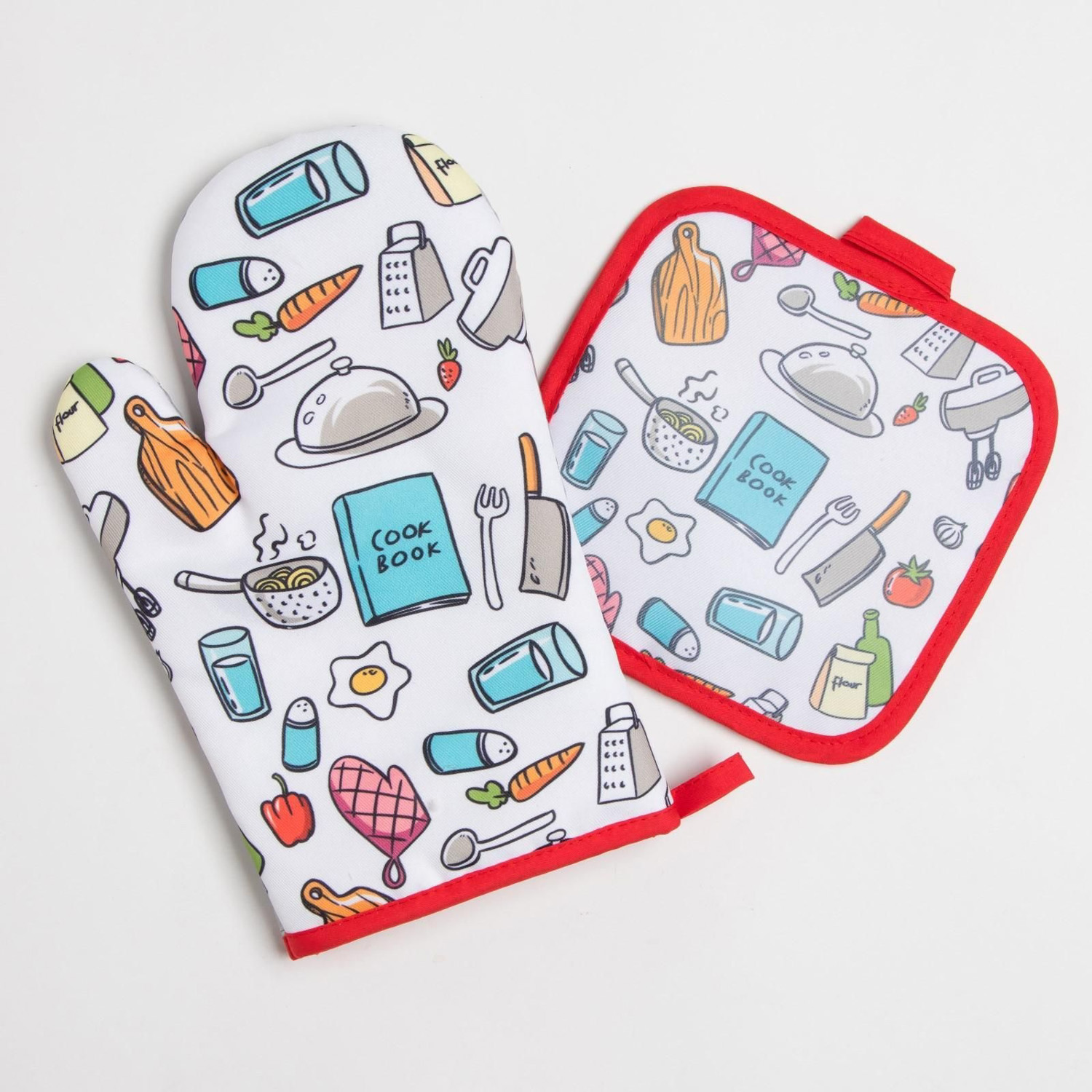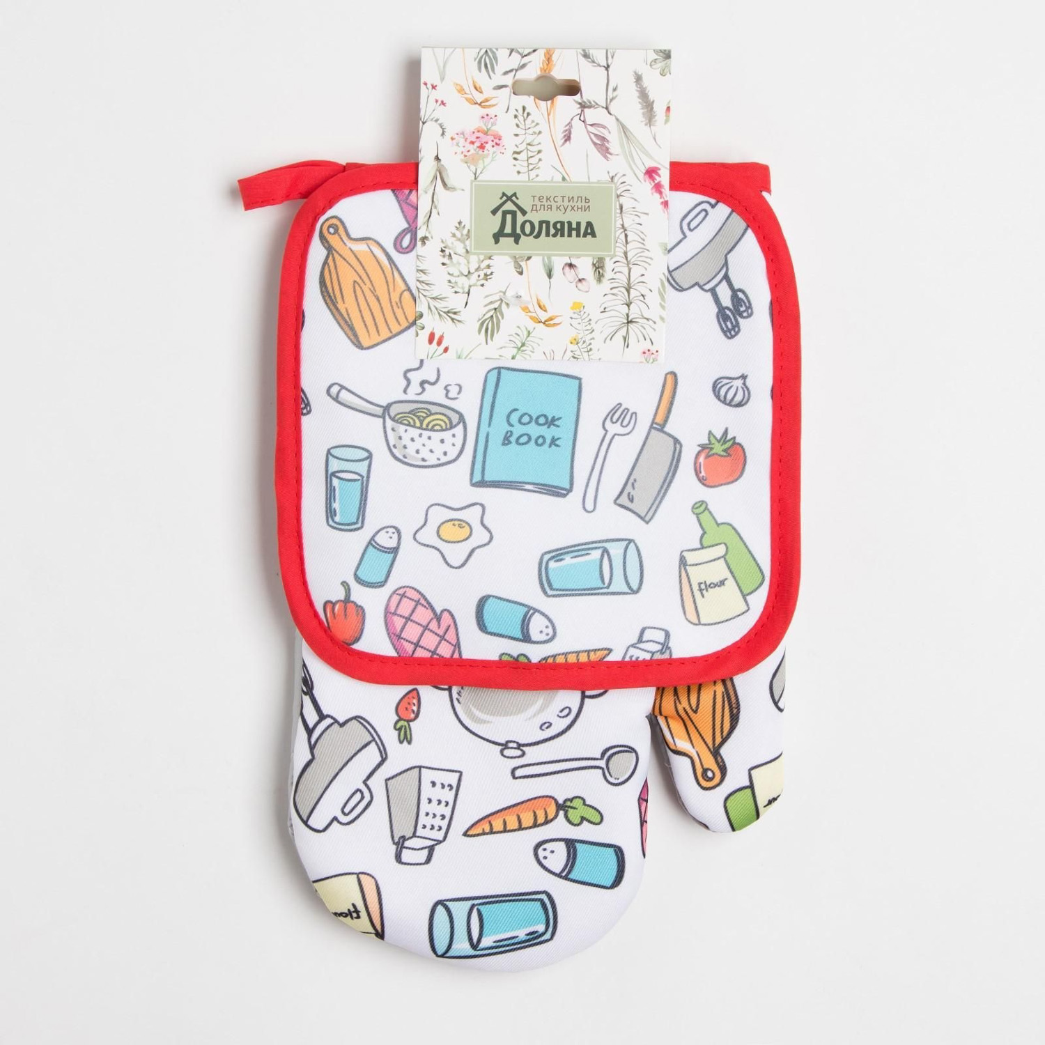 Набор прихваток Cook book варежка-прихватка 20х26см, прихватка 17х17см 100% полиэстер Доляна *1