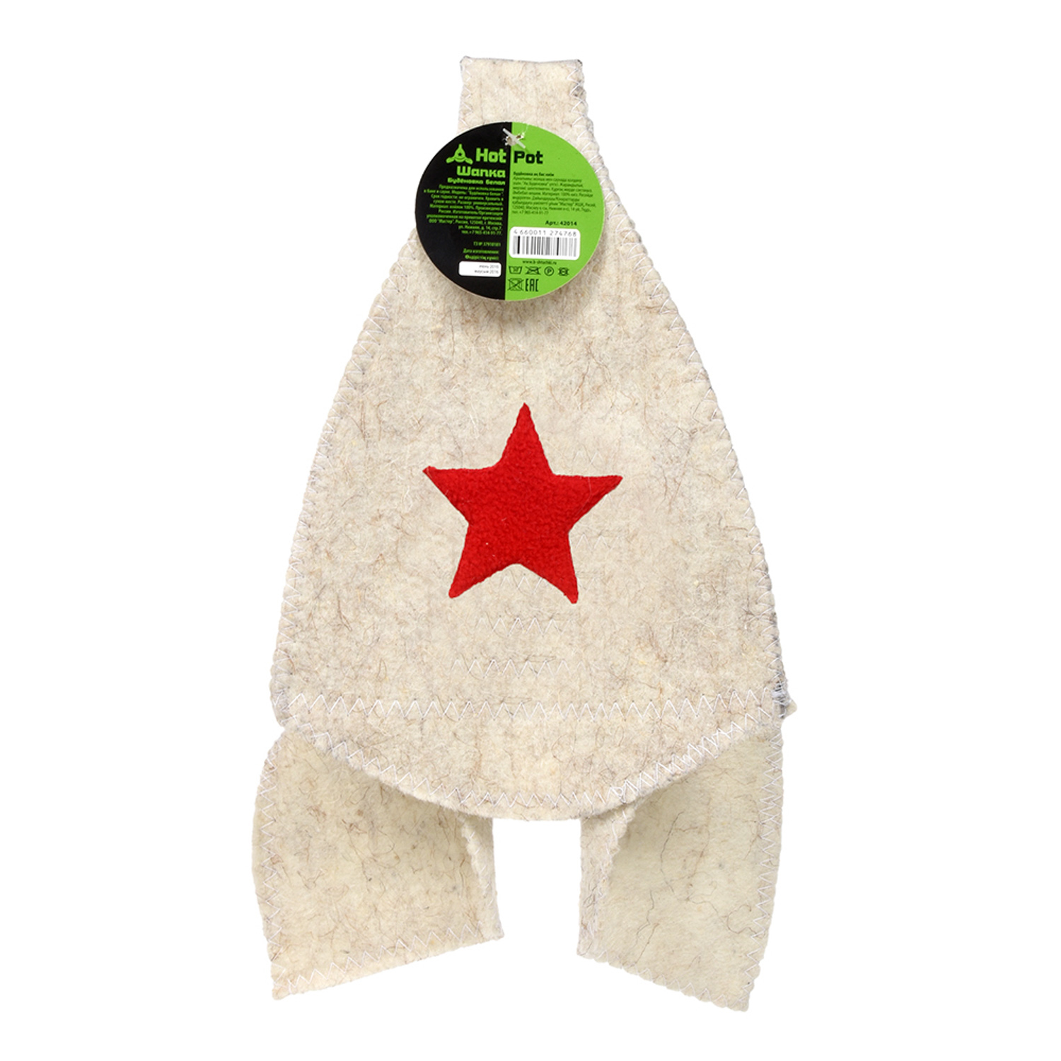 Шапка "Будёновка" белая "Hot Pot" , войлок 100% / 20