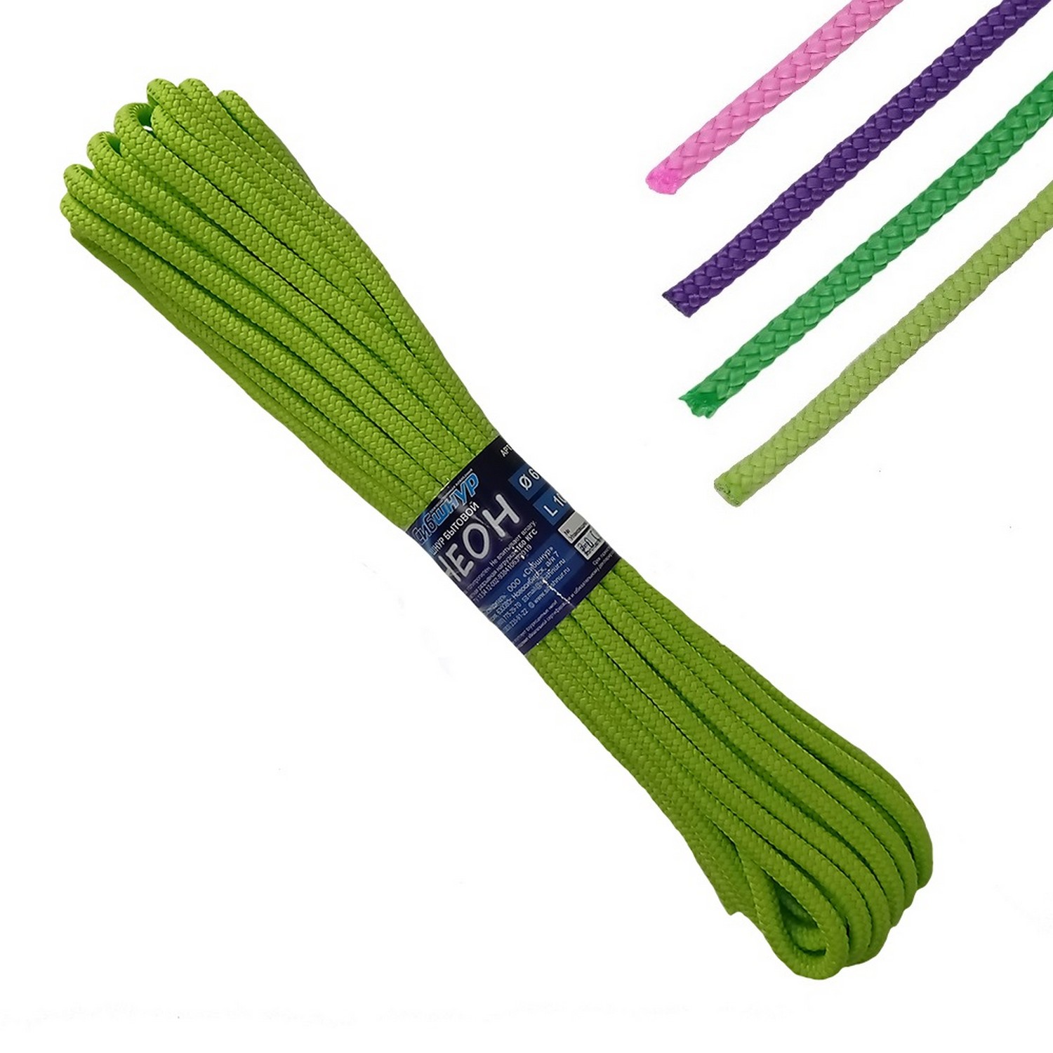 Шнур полипропиленовый d 6мм дл.10м плетеный "Неон" цвет-микс арт.20625 ("Сибшнур") *1/50