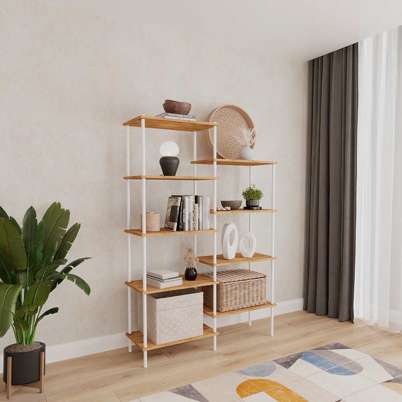Стеллаж металл. "НеШкаф 49" выс.1,69м, шир.1,08м, гл.0,37м, 9 полок: 5+4, Дер./Бел. ССНШ 49Б "ЗМИ"*1