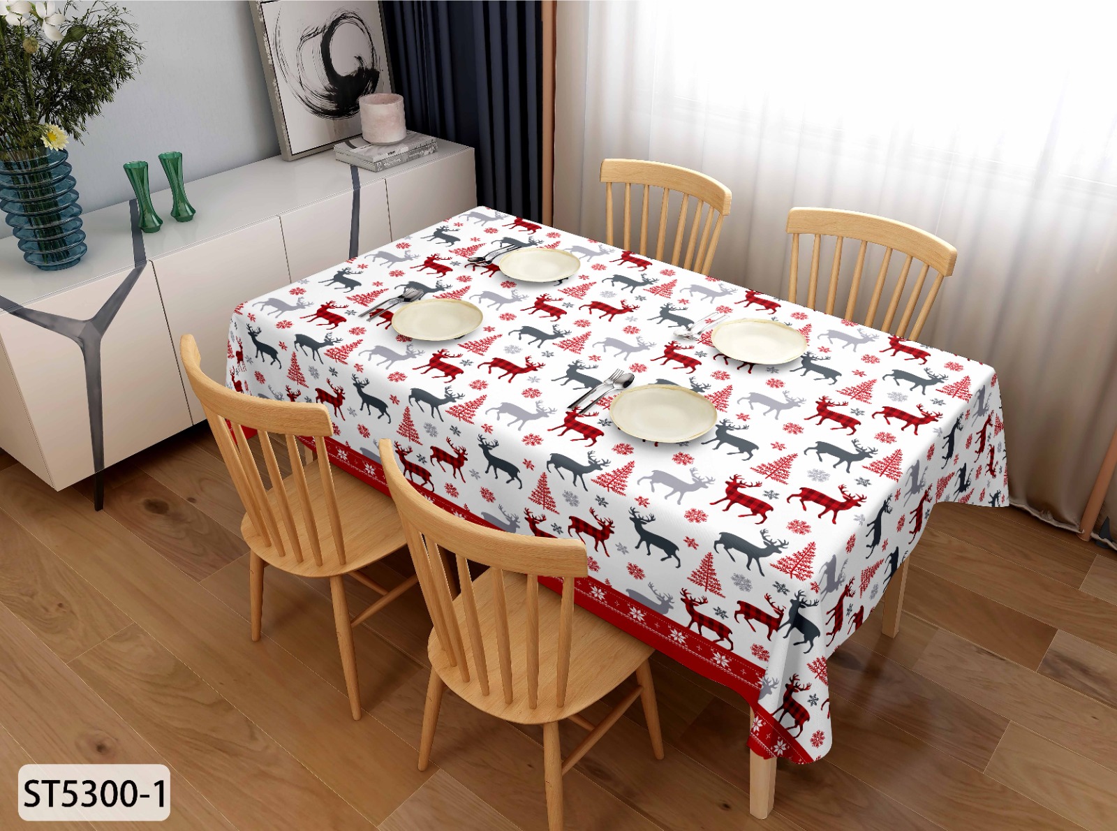 яяяКлеёнка на тканевой основе "Print" "Новый год, Олени" на белом шир.1,37м GW-21652 "Great Way" *20