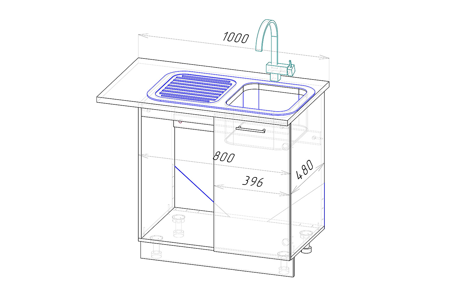 Корпус тумбы под мойку 1000х850х600 мм ГЕРДА, белый