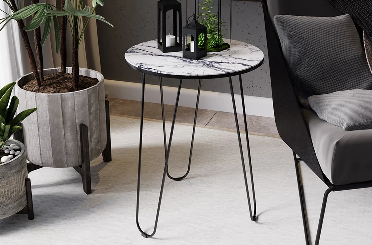 яяяСтол журнальный ДП-1-03-09 Чёрный/Стекло Мрамор белый*1