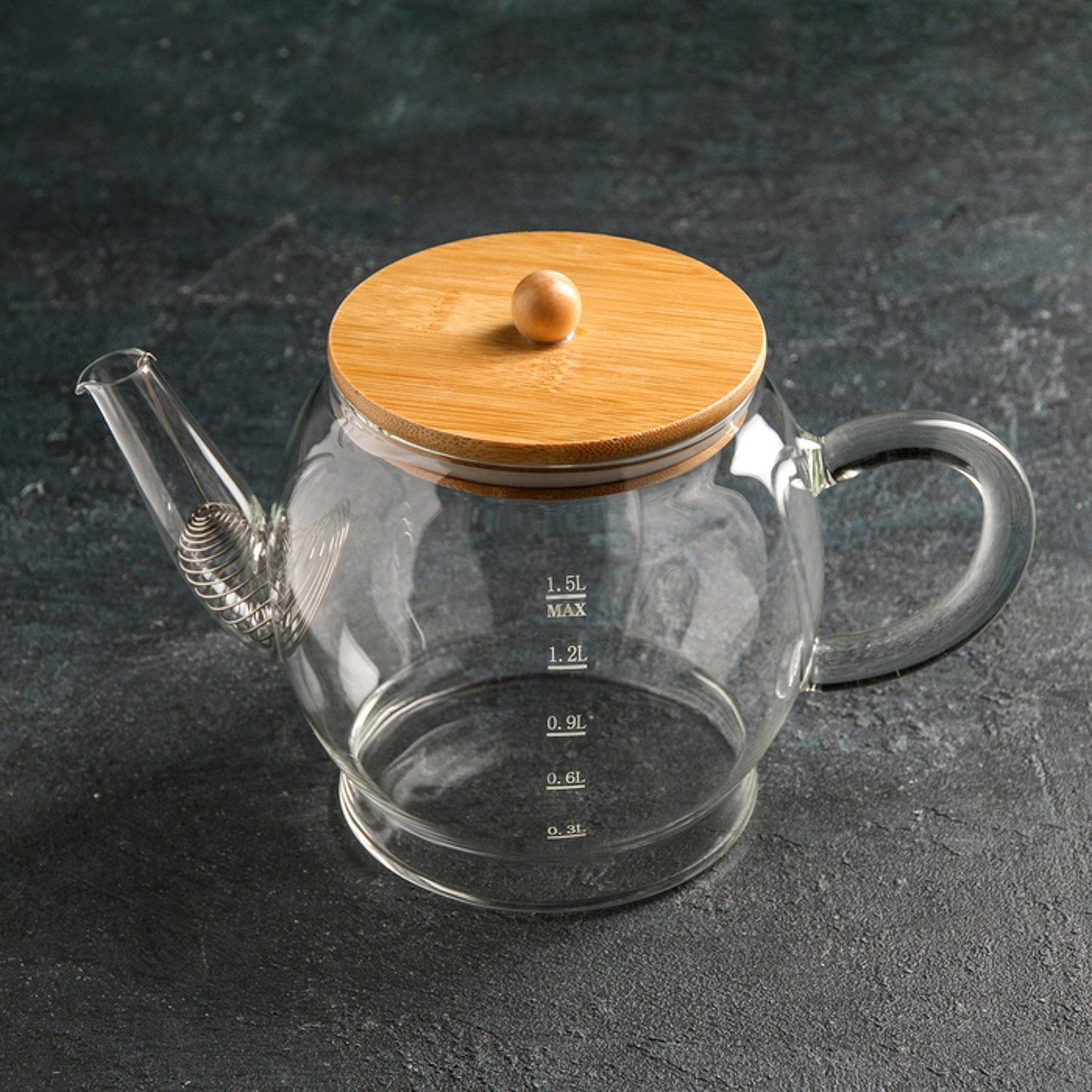 Чайник заварочн. стекло ECO 1500мл бамбук/нерж. крышка, фильтр-пружина (F01-06) *1/36