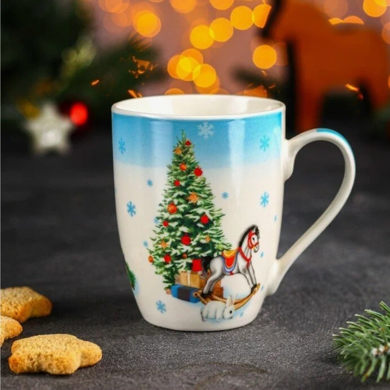 Кружка "Новый год" фарфор. 350мл "Новый год. Игрушки" 7866254 "Доляна" *12/48