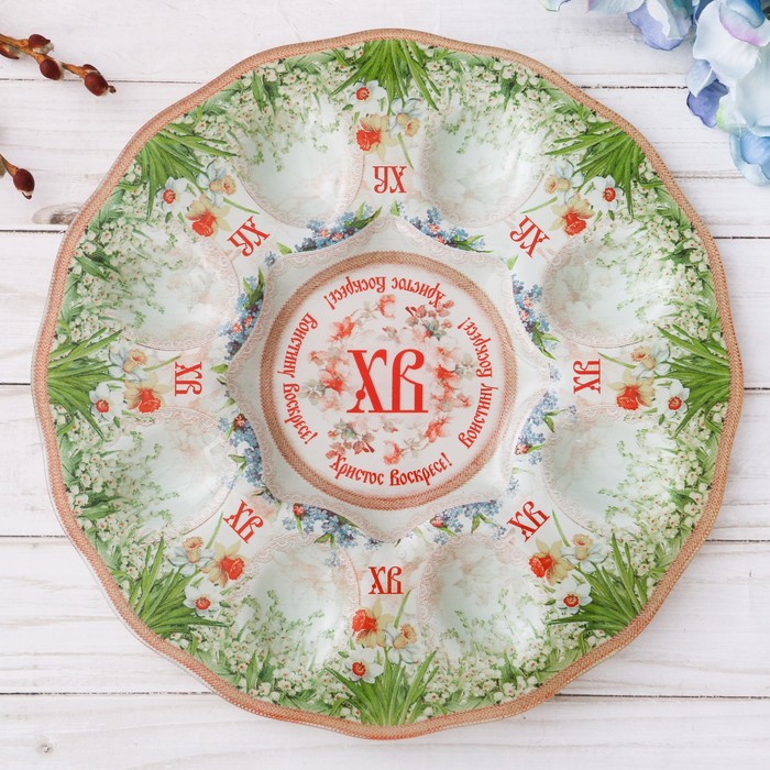 Подставка пасхальная стекло на 8 яиц "Цветочная", диам. 25 см 1766210