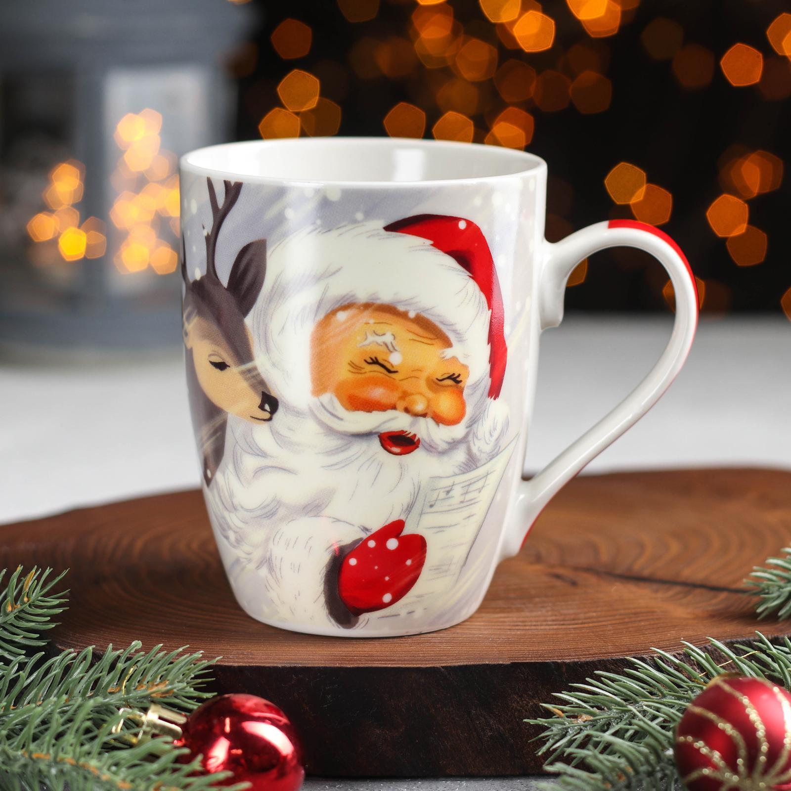 Кружка "Новый год" фарфор. 350мл "Дед Мороз и оленёнок" 3324266 "Доляна" *12/48