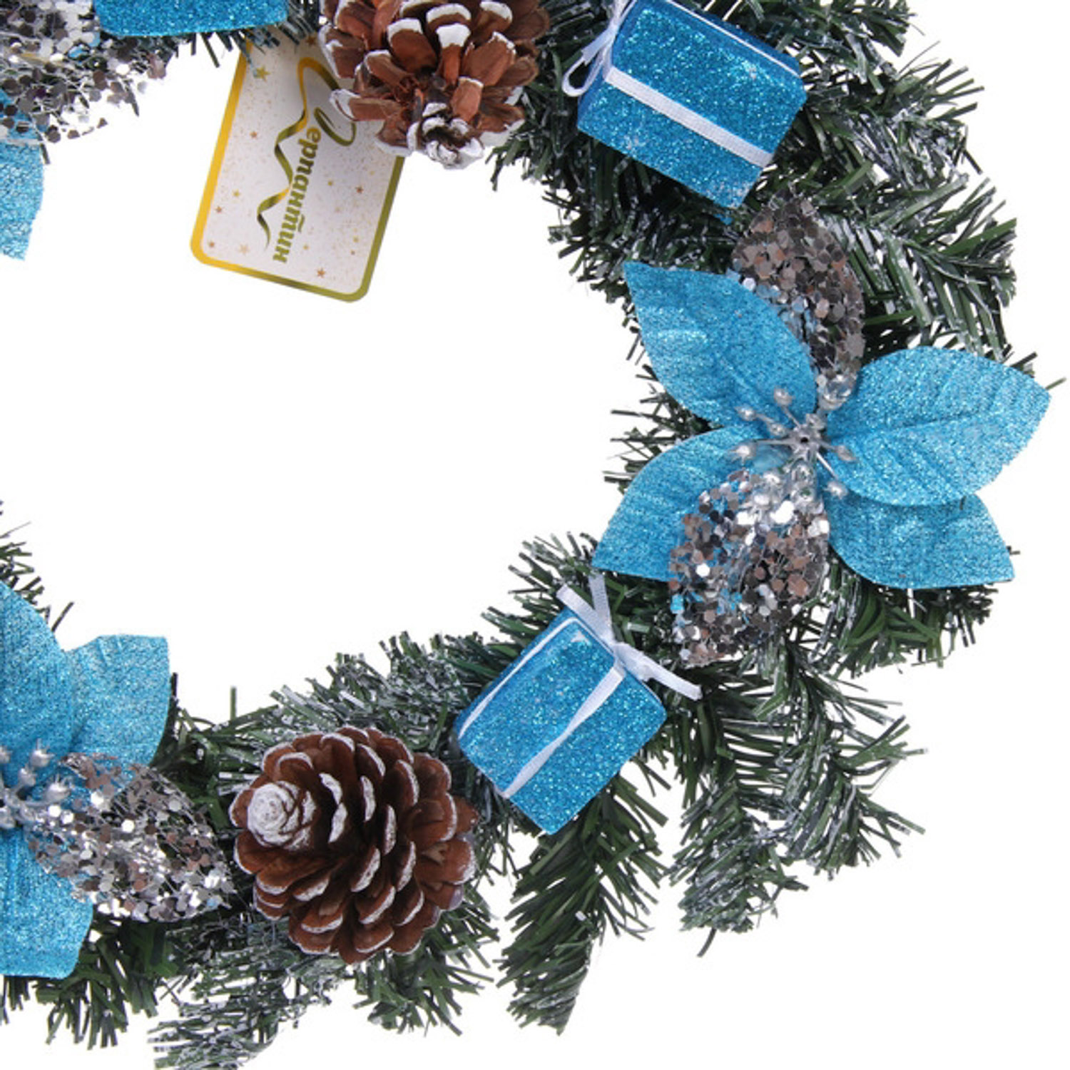 Венок хвойный "Снежное синяие" d-30 см