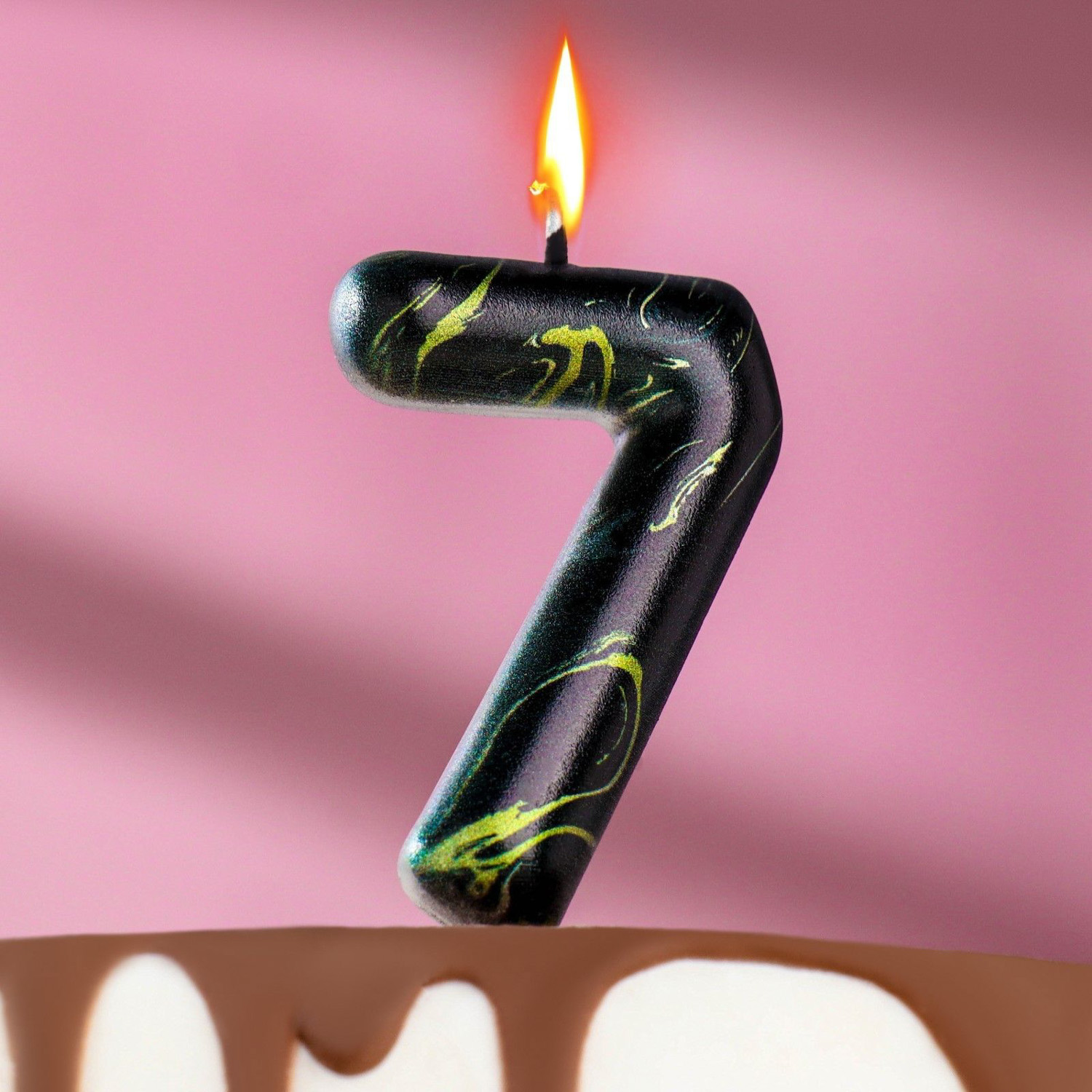 Свеча в торт "Черный мрамор", цифра "7", 8 см 6990861