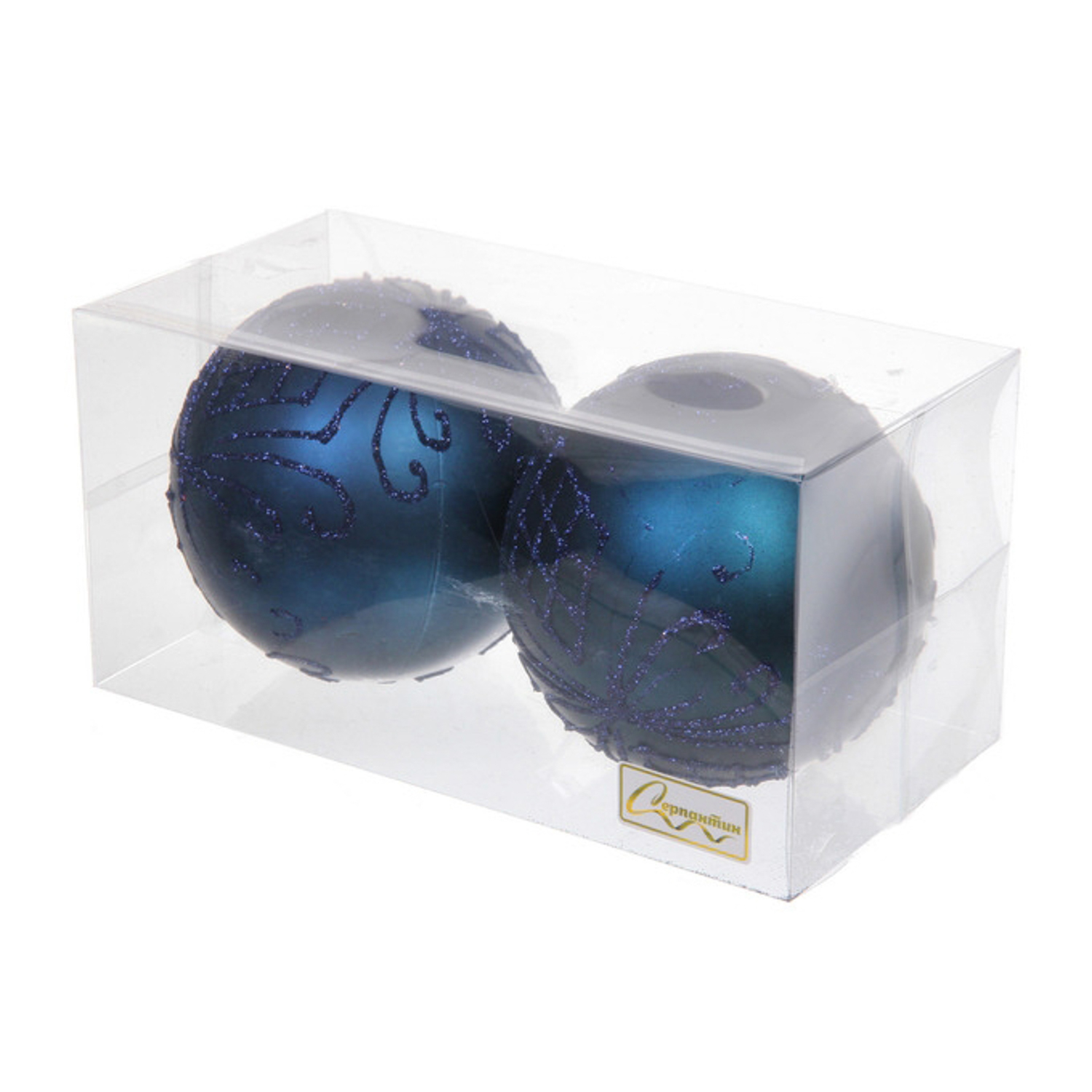 Новогодние шары 10 см (набор 2 шт) "Загадочная мечта", сапфир