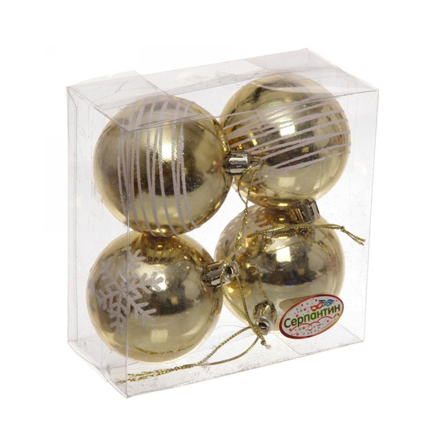 Новогодние шары 6 см (набор 4 шт) "Снежные нити", золото/белый