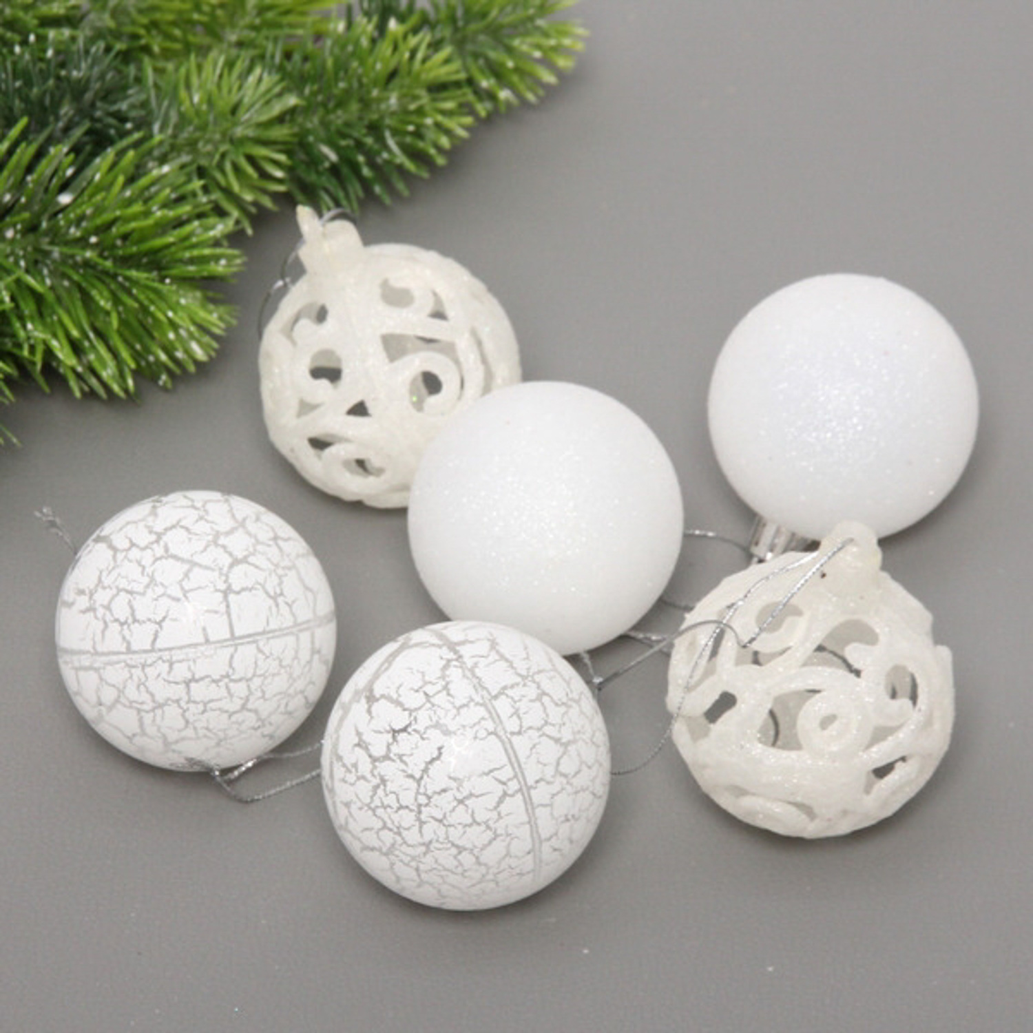 Новогодние шары 6 см (набор 6 шт) "Снежное сияние", Белый