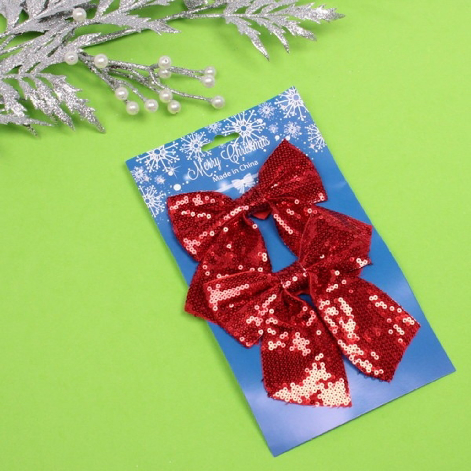 Набор бантов на елку Серпантин «Серебряный блеск», 14 cм, 2 шт., серебро