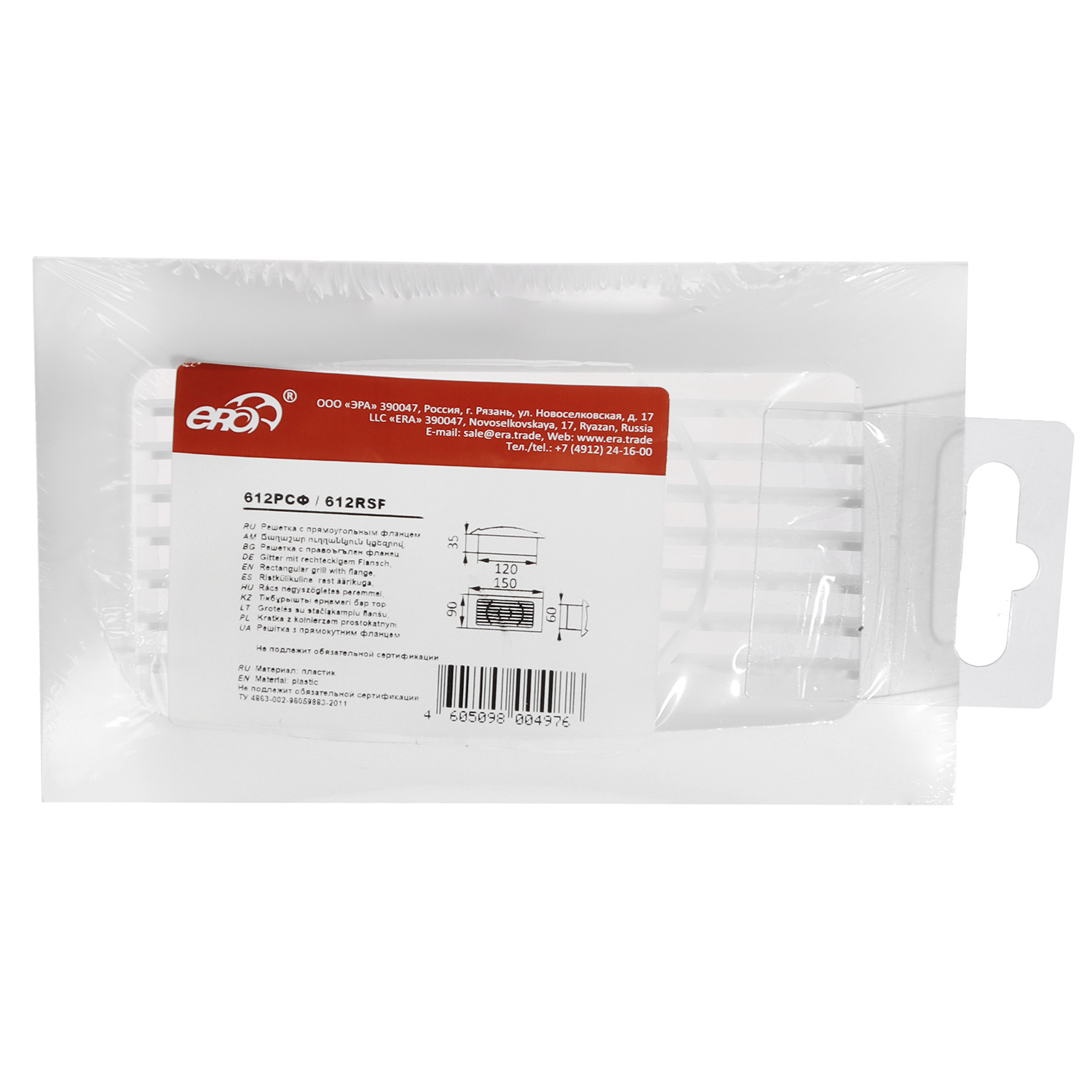 Решетка вентиляционная 150х90мм 612РСФ ERA (с фланцем 120х60мм) *1/22